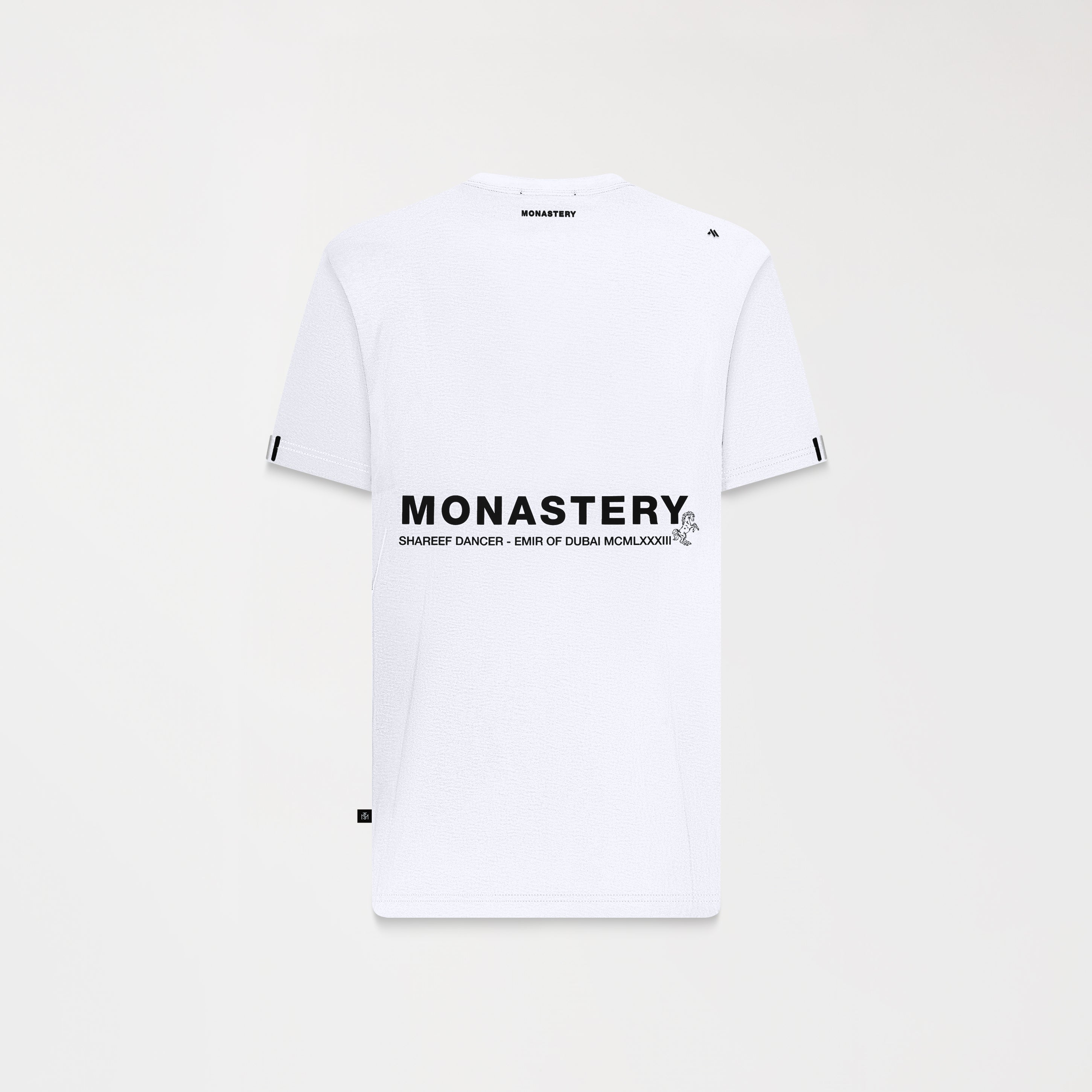 Applejack is a versatile men's t-shirt with a refined aesthetic. It is made from high-quality cotton and features a regular silhouette that balances comfort and structure. The 2.5 cm ribbed collar provides definition, while the high-density prints, both front and back, give the garment a graphic character. An embroidered line detail on the sleeve adds a subtle and distinctive accent. Ideal for a natural transition between casual and sophisticated.
