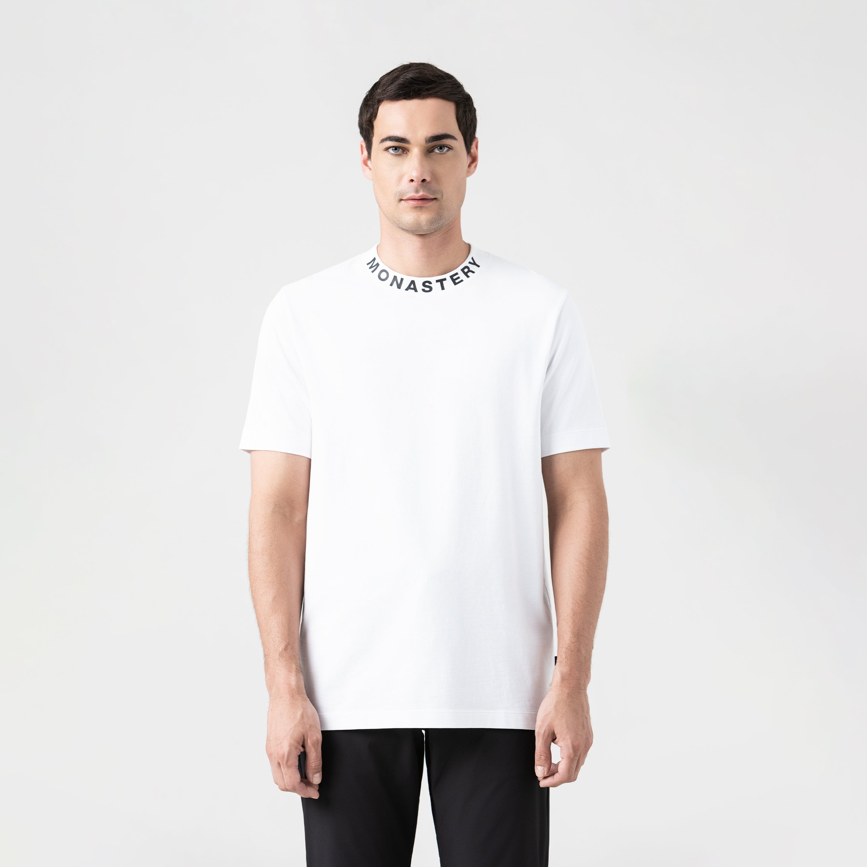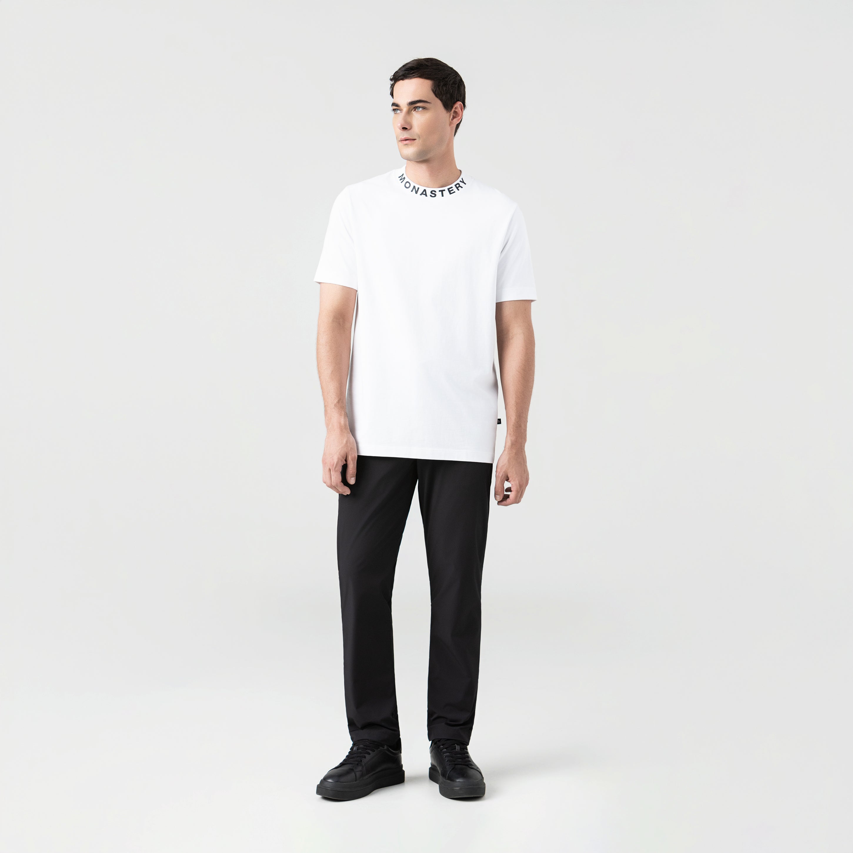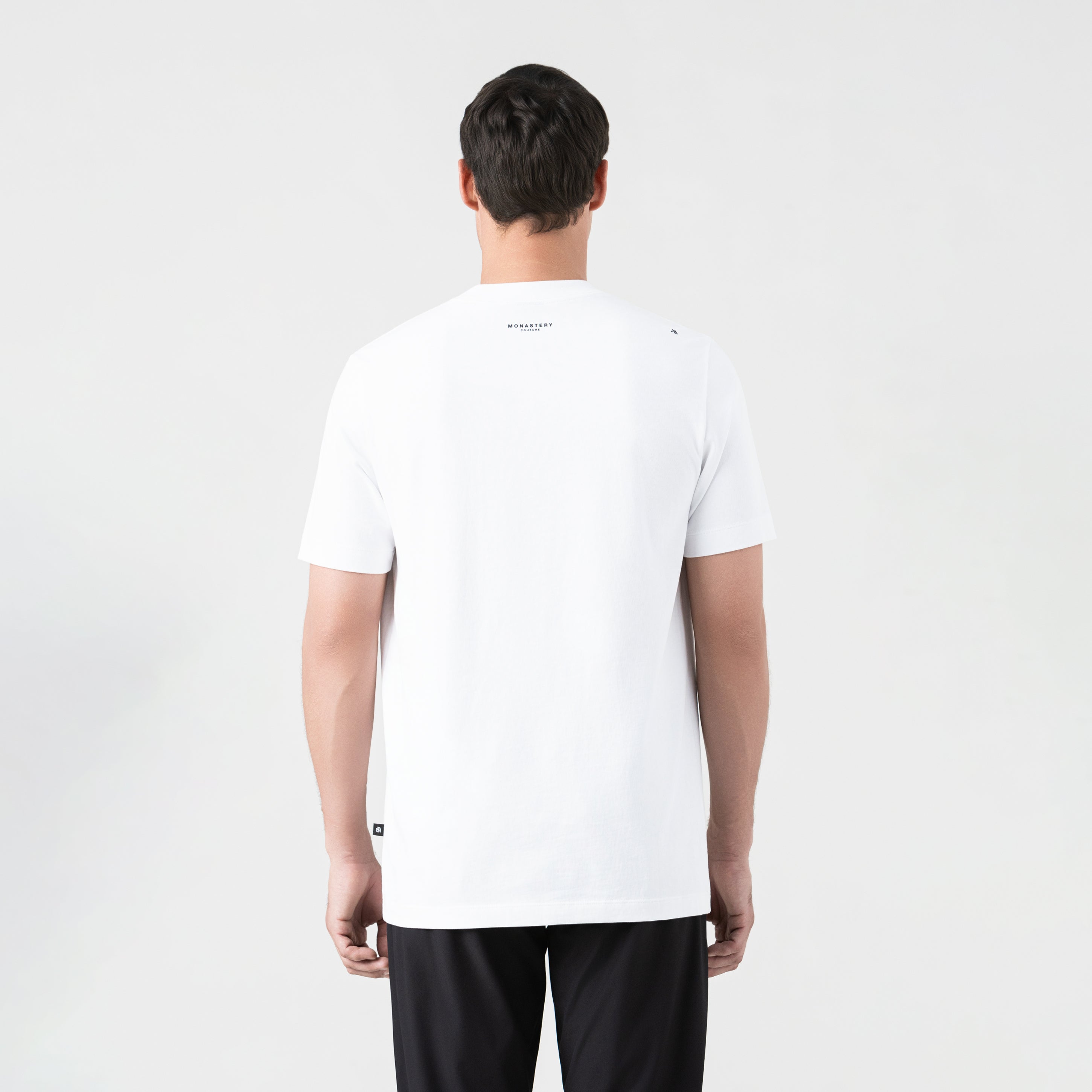 Astro 1 is a men's t-shirt. Crafted from high-quality cotton, this regular-fit t-shirt with a 3cm ribbed collar redefines the essential with a sophisticated approach. The design remains clean and versatile, with a subtle flat print on the neck for an unexpected twist. On the back, a high-density print introduces texture and character, while maintaining a sleek silhouette. Ideal for those looking for functional pieces that maintain design.