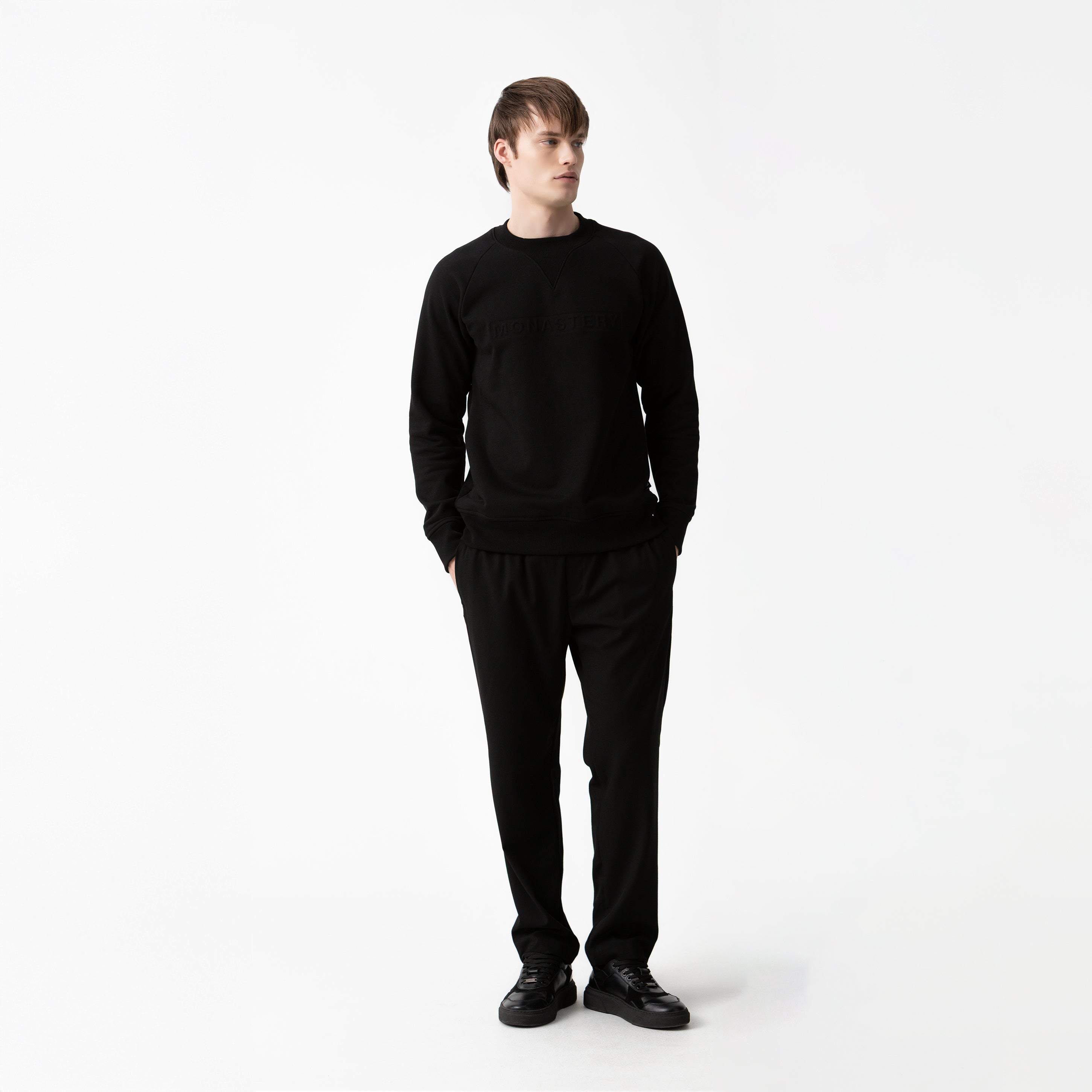 En el frente, resalta el logo Monastery aplicado en técnica termoformada de alta precisión, generando relieve, definición y una textura distintiva.