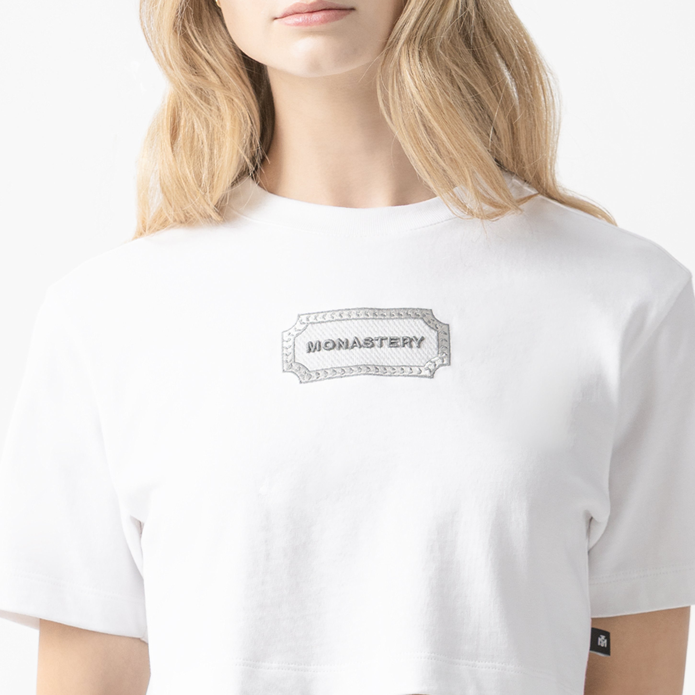 Behn is a crop top made from 100% high-quality, ultra-silicone-coated cotton, with a small silhouette that subtly enhances the figure. The front features a flat embroidery with delicate 3D embroidery, creating a sophisticated and distinctive relief effect. The back features a flat print that balances the design with a clean and refined finish. A versatile piece that adds a refined air to casual styles and blends naturally into more elegant combinations.