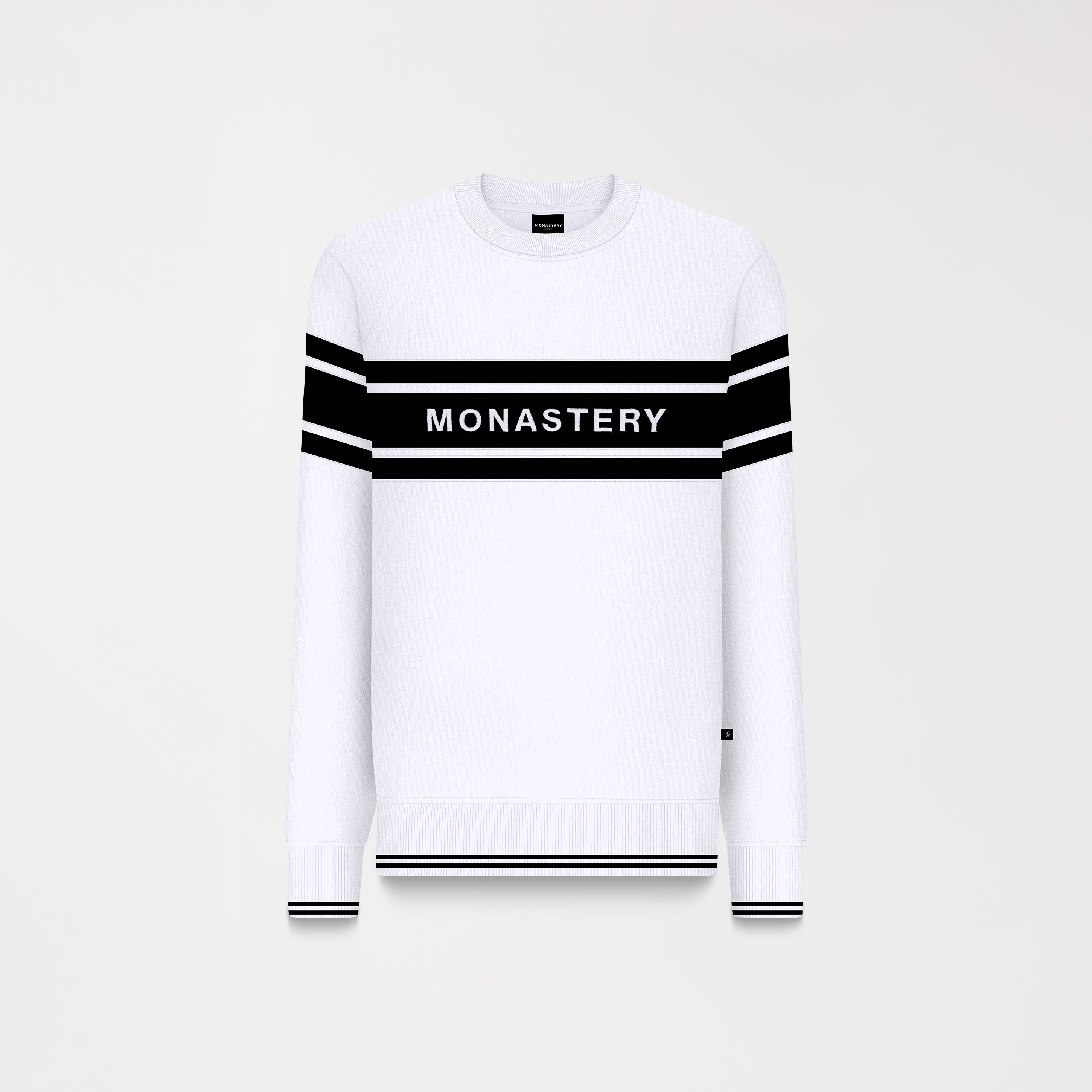 Its modern design features horizontal seams throughout, adding texture and structure. A flat embroidered logo on the chest provides a distinctive and elegant touch. The ribbed collar and cuffs enhance the finish, creating a subtle and sophisticated contrast.