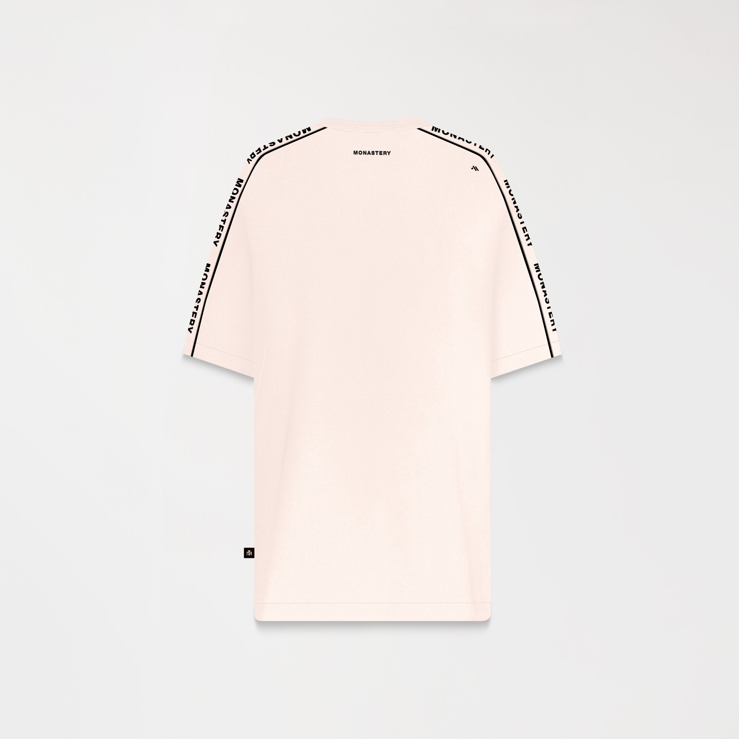 The oversized Monastery fabric T-shirt is a statement of control and millimetric design. Crafted from Monastery fabric, this oversized fit T-shirt redefines the codes of minimalism through its construction. Its 2.5 cm ribbed collar marks the starting point of a deliberately wide silhouette, offset by a sleeve cut that provides structural tension. The signature detail: a vivid contrasting bias, which traces a precise and visually disruptive line, like a clean incision on a perfect surface. It's a piece for the man who understands that true luxury lies in the details.