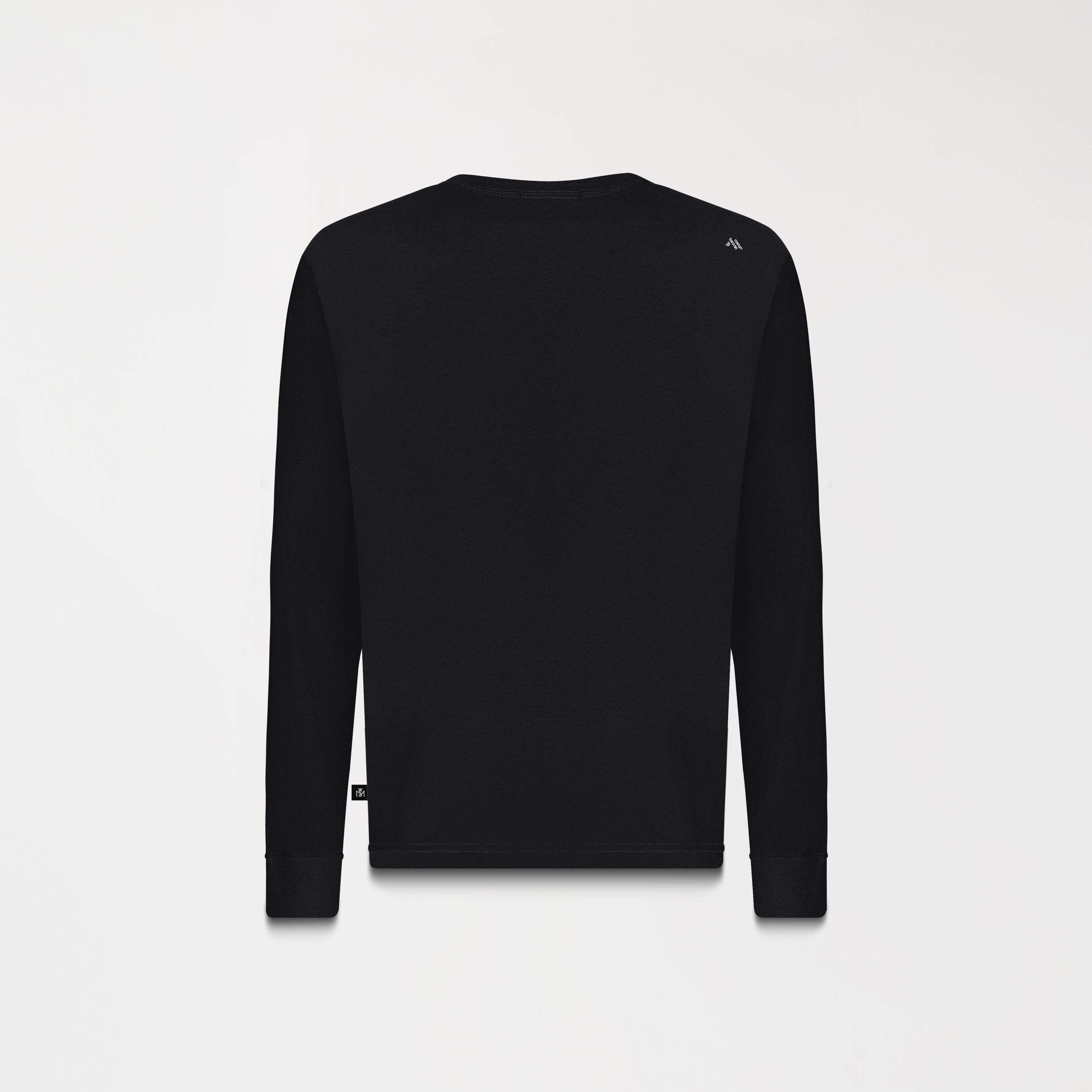 On the front, the Monastery artwork is applied in silver foil, a technique that provides a controlled metallic shine and a sophisticated appearance that enhances the garment's contrasts. On the back, the signature logos are also presented in silver foil, creating visual coherence between both sides and consolidating the collection's aesthetic identity.