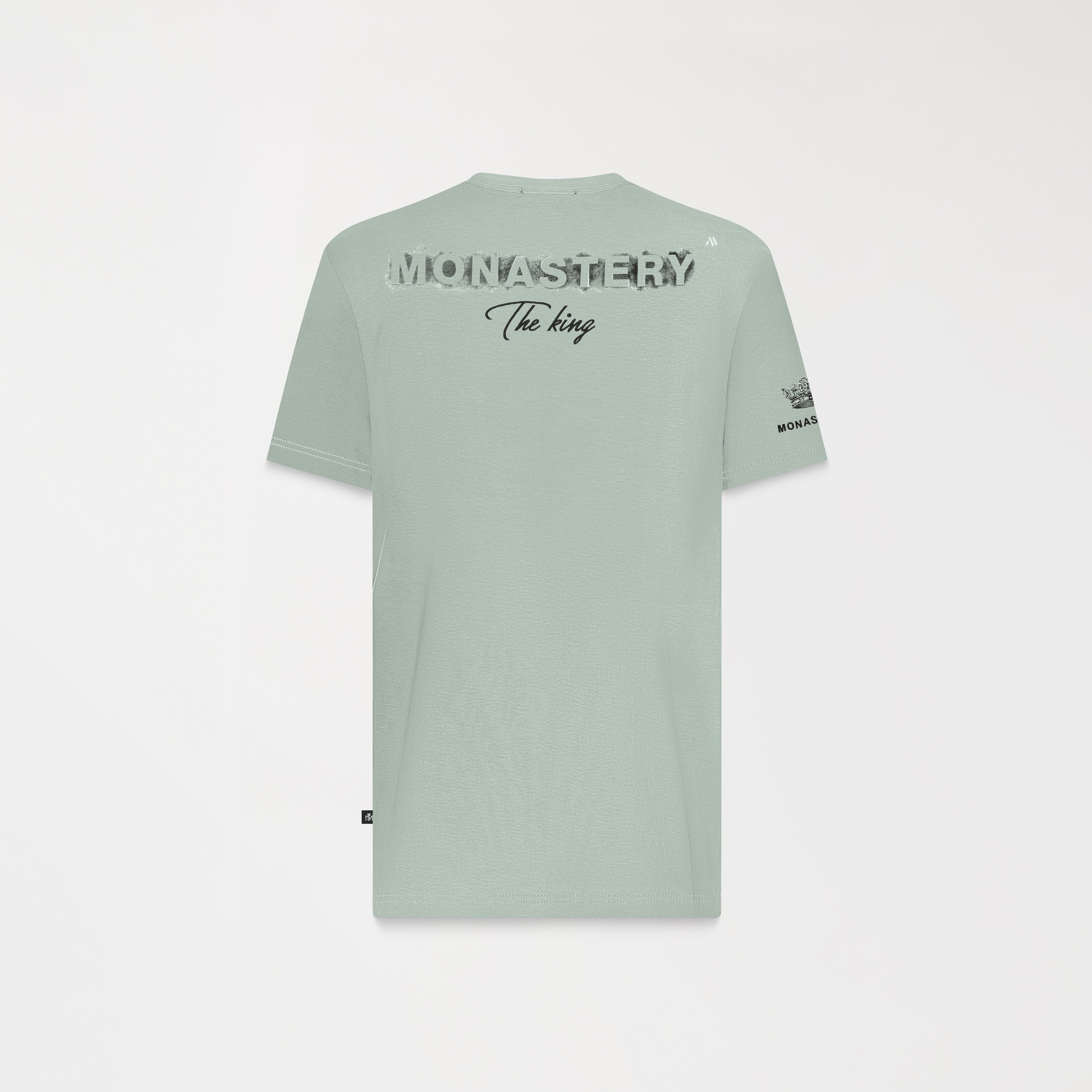 Brunar is a men's regular-fit t-shirt with a 2.5 cm collar, crafted from 100% Peruvian Pima cotton exclusively for Monastery. The right sleeve features a flat embroidery technique, creating a subtle and elegant effect, adding texture without being overly heavy, highlighting the design and adding a unique touch to the garment. On the back, two techniques are combined: plastisol and flat embroidery, complementing the design with a touch of texture and volume, creating an interesting contrast with the plastisol and lending a dynamic and contemporary style to the t-shirt. This multi-technique design allows for a versatile, modern, and high-quality garment, with carefully crafted details that make it stand out without losing the comfort and simplicity of a classic t-shirt.