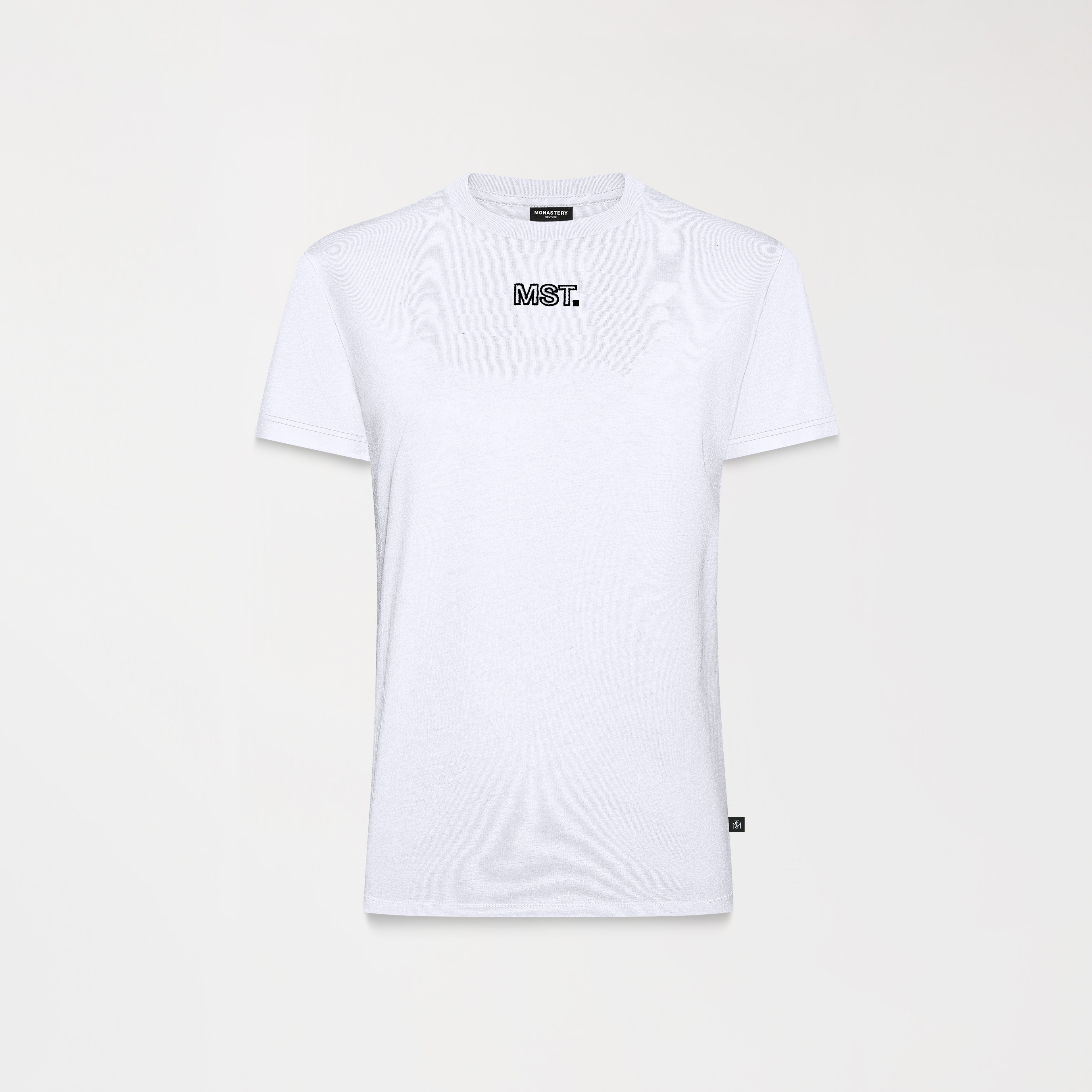 A women's T-shirt crafted with a small silhouette designed to highlight the feminine figure, Brynna is a design that features the iconic MST logo in a horizontal flat-outline embroidery on the center front. This item is made of 100% cotton exclusively for Monastery. This dynamic garment is ideal for wearing on any occasion.