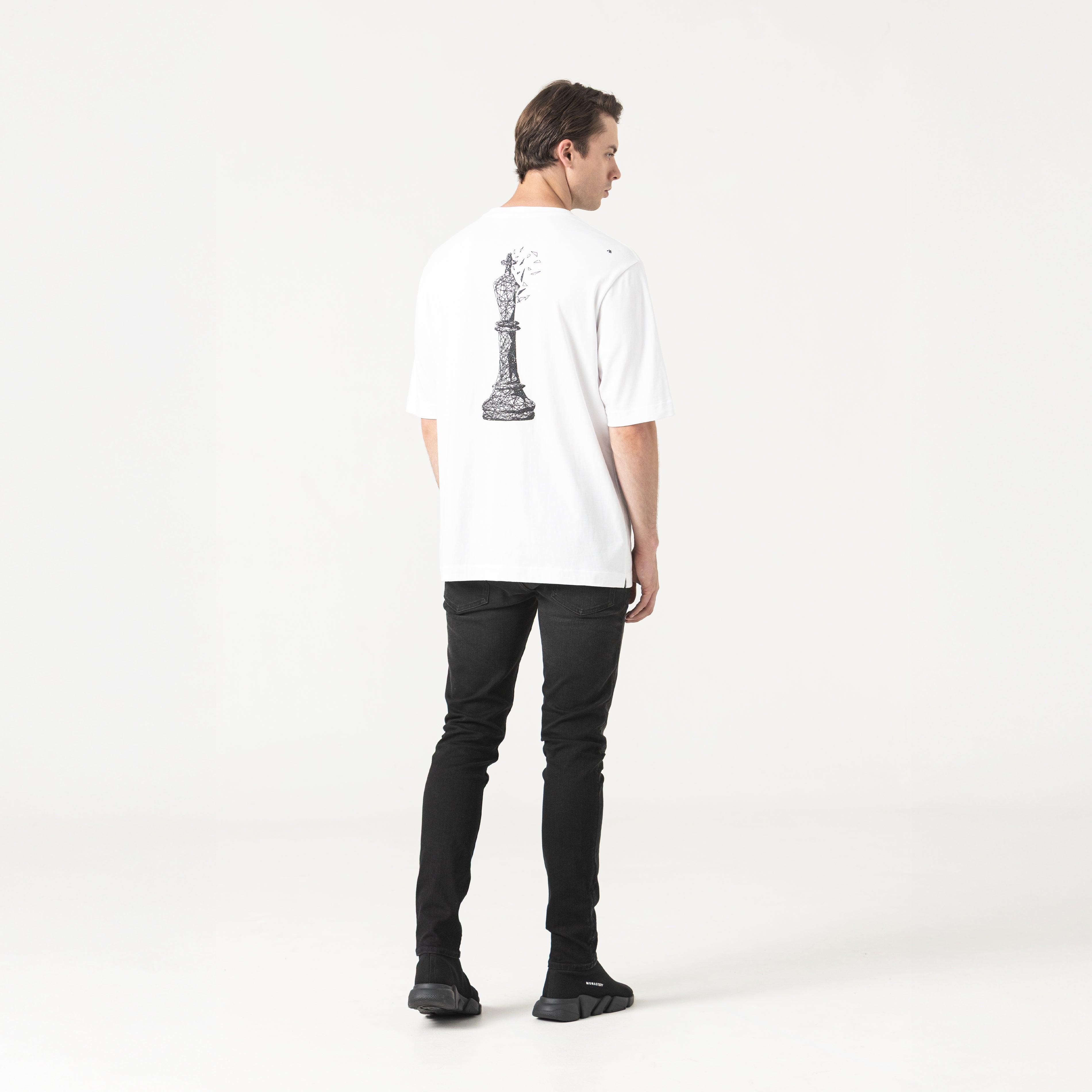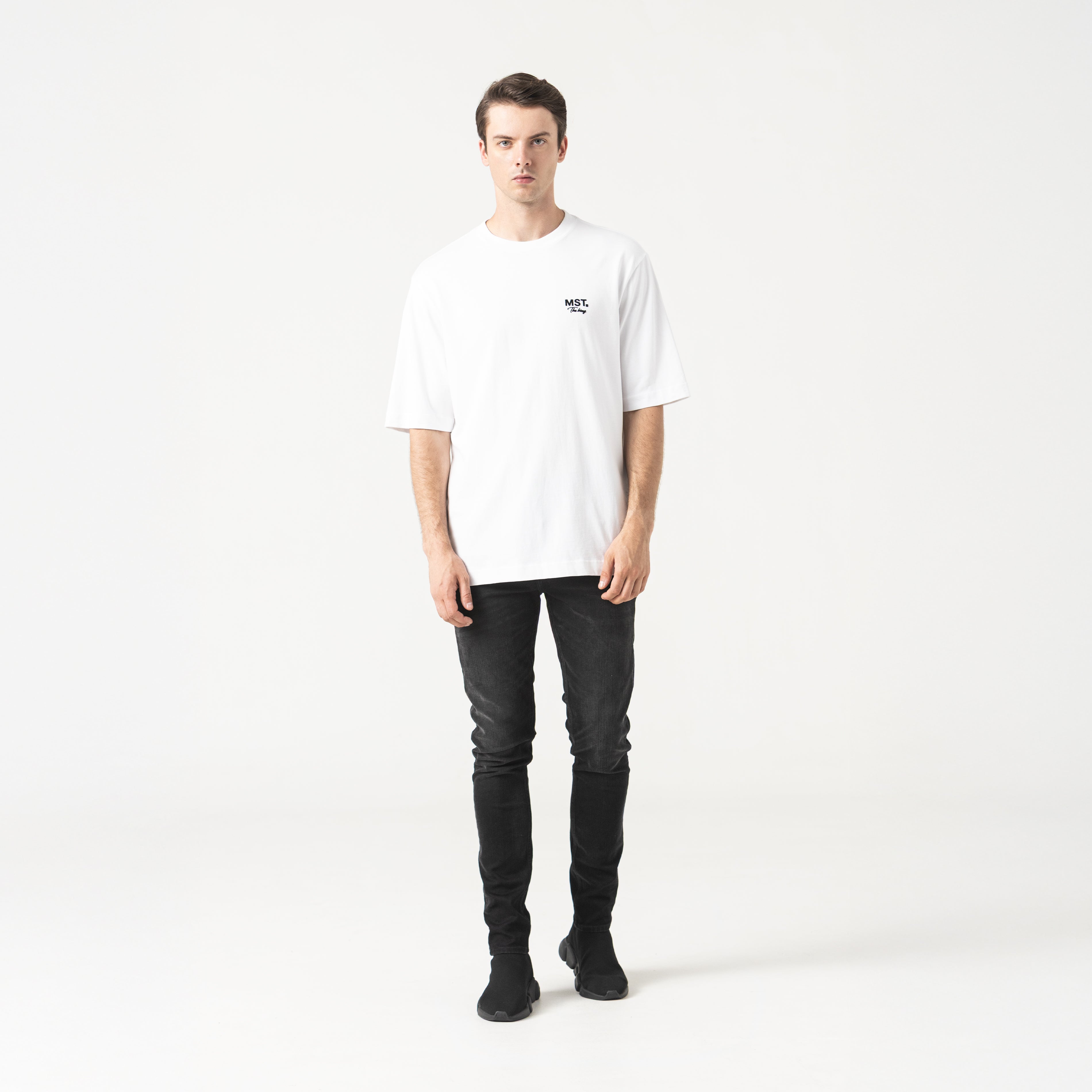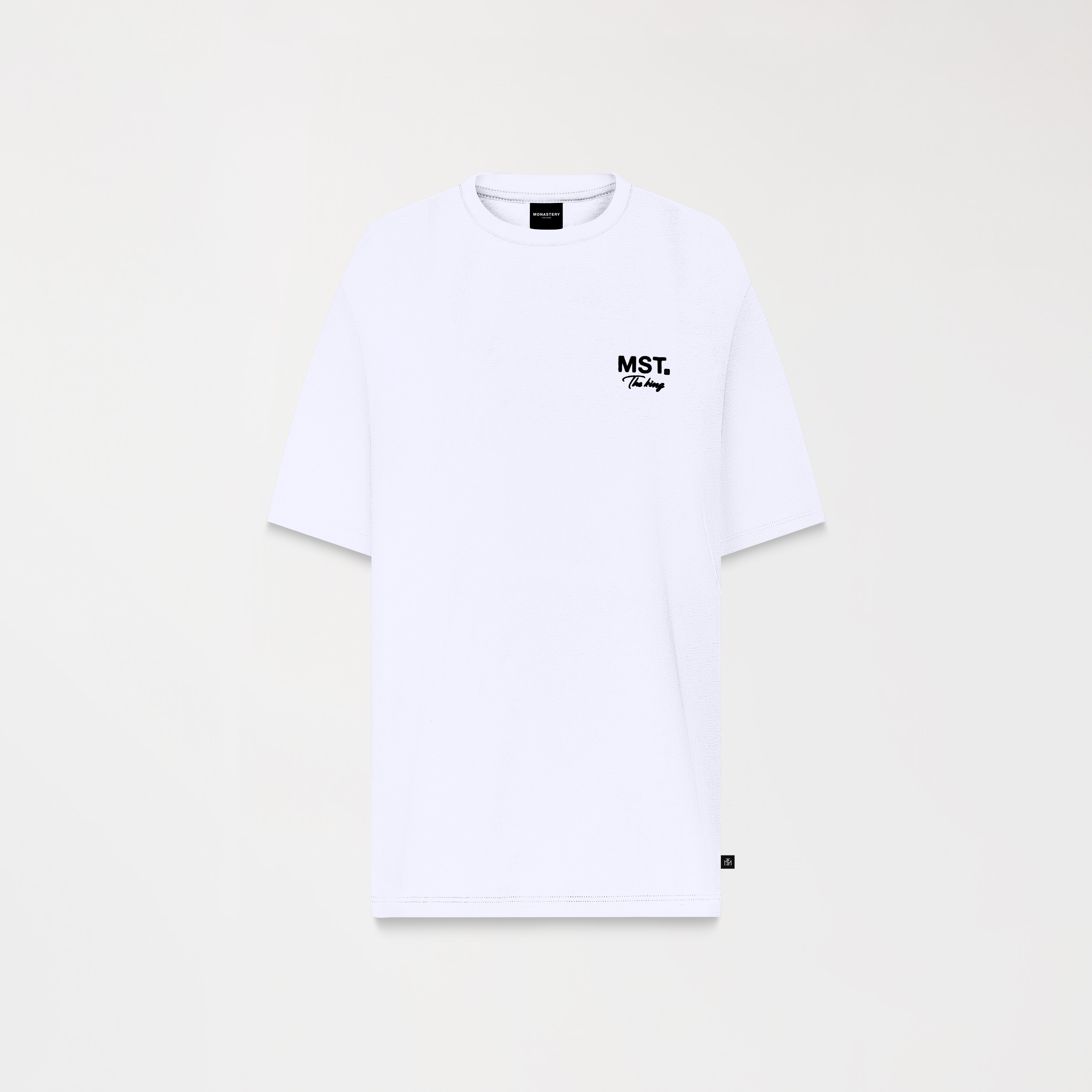 Carlier is a dynamic and versatile men's t-shirt featuring our MST logo in a heart-stitch pattern using a flock technique. On the back, it features a combination of flock and flat weave techniques, creating an art inspired by the king that is reworked to adapt to his new world, becoming a unique and easily recognizable piece of our brand. Crafted in an oversized silhouette in 100% cotton exclusively for Monastery.