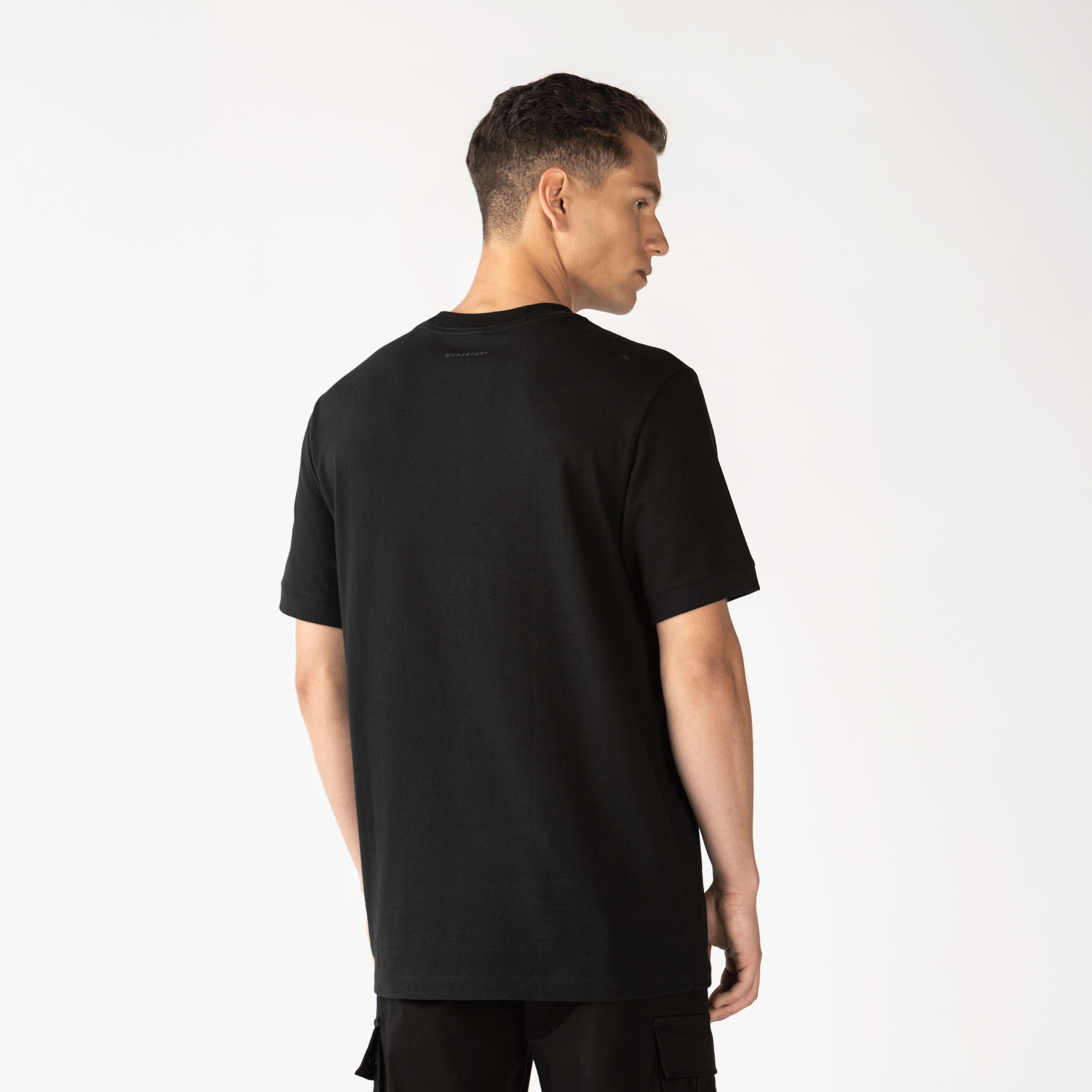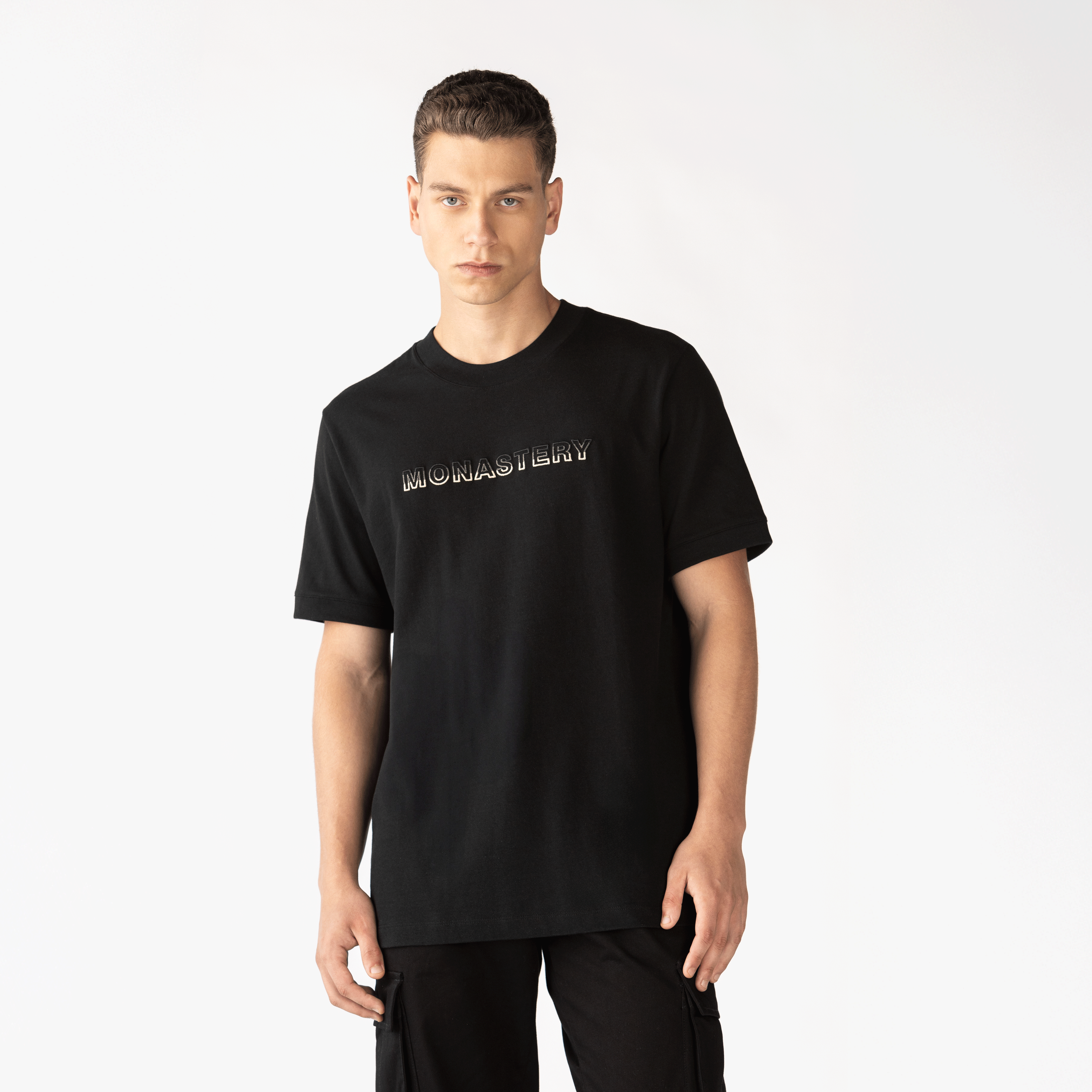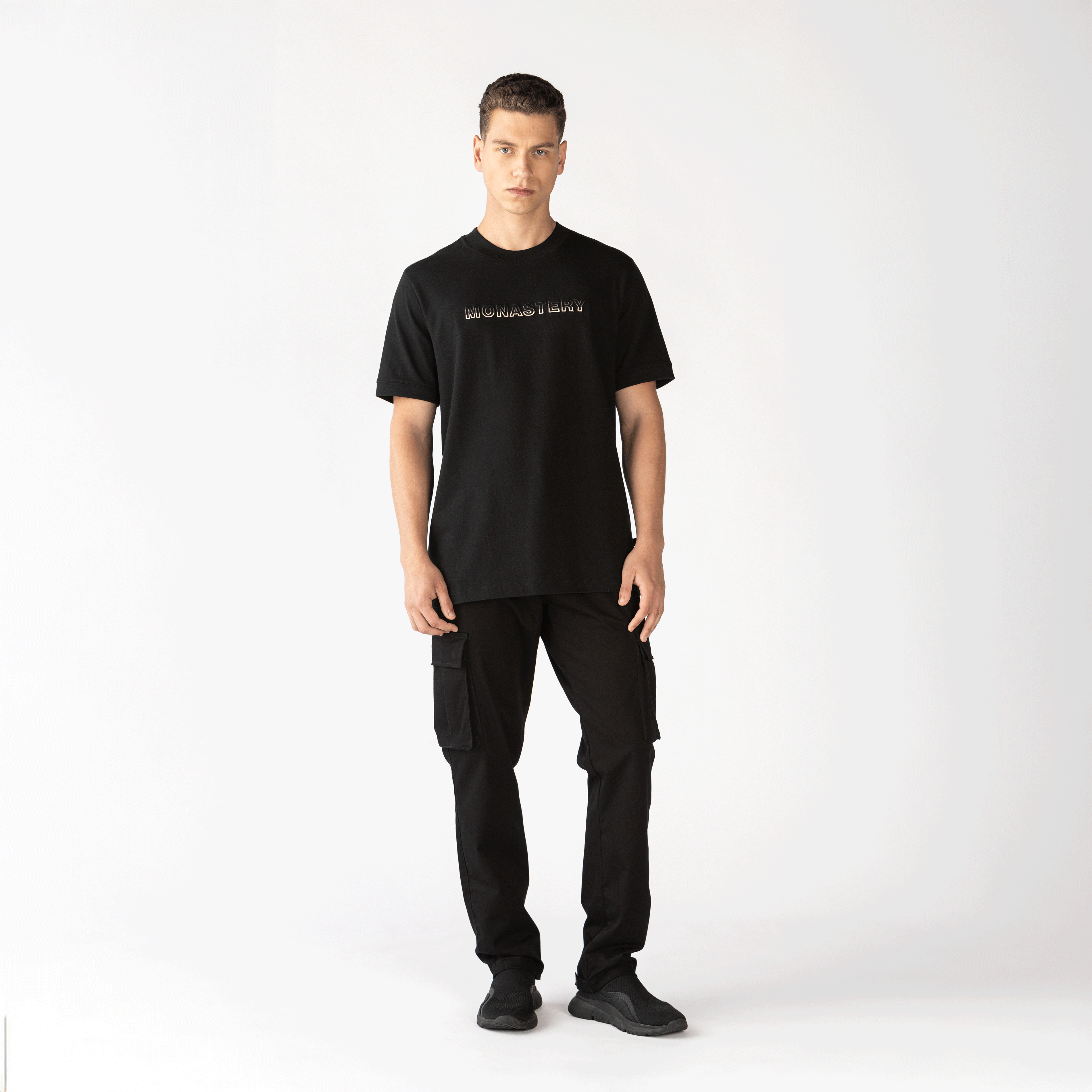 The Flatwick Black Men's T-Shirt made from Monastery cotton, this men's t-shirt guarantees maximum comfort. On the front, it features a 3D embroidered art with a gradient effect that brings a modern and dynamic touch. The back stands out with a high-density design, providing a detailed visual appearance and a unique texture. Perfect for those looking for a garment that combines style and originality, this t-shirt is ideal for any casual occasion. Look exceptional effortlessly!