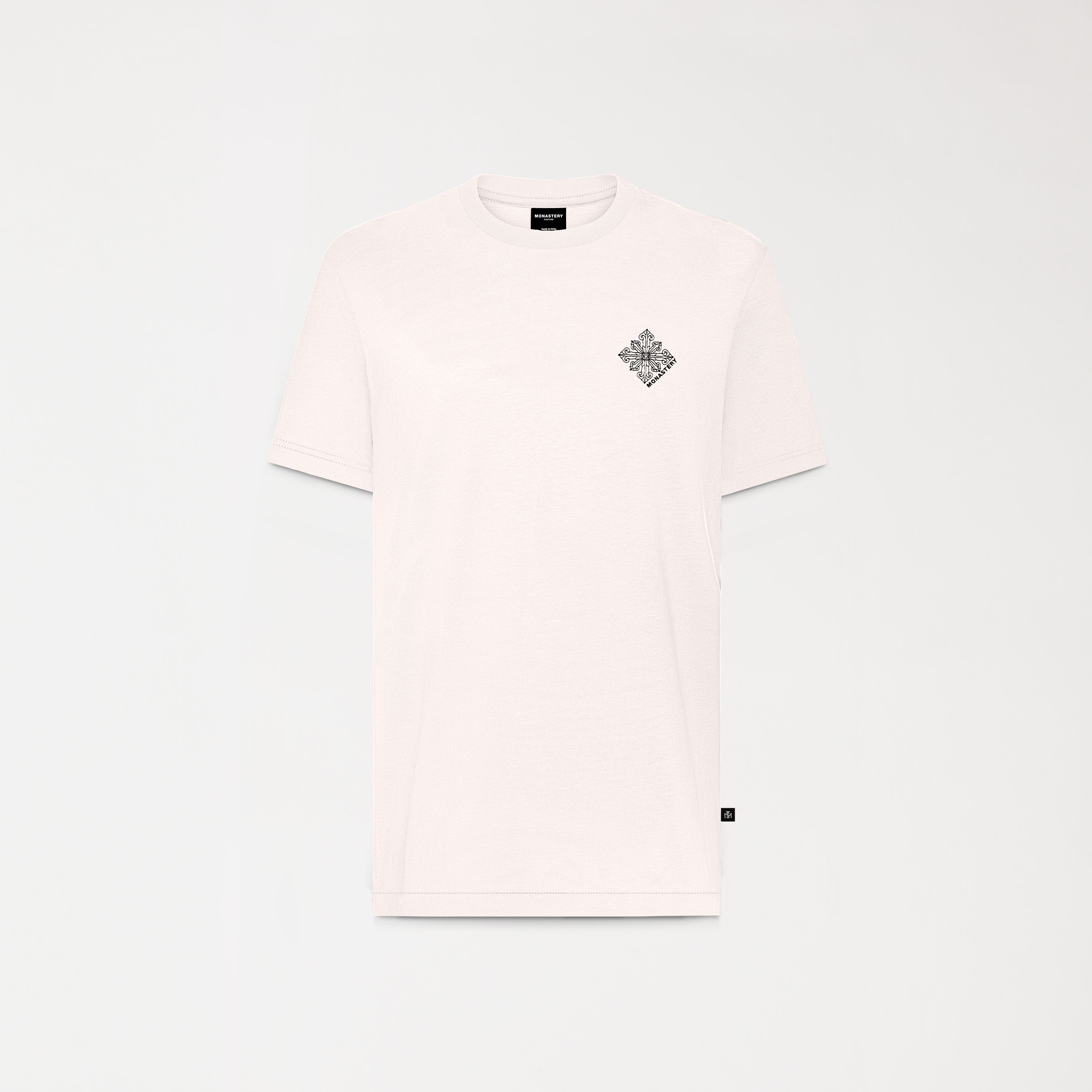The Catterdale moonbeam t-shirt is made in a regular silhouette, made from cotton exclusive to Monastery, this t-shirt offers a soft and comfortable texture. It features a flat cross-shaped embroidery art, located in heart stitch, which provides a modern and meaningful touch. On the back, the signature arts are made in high density, providing a distinctive and elegant finish. Ideal for those looking for a unique and contemporary style.