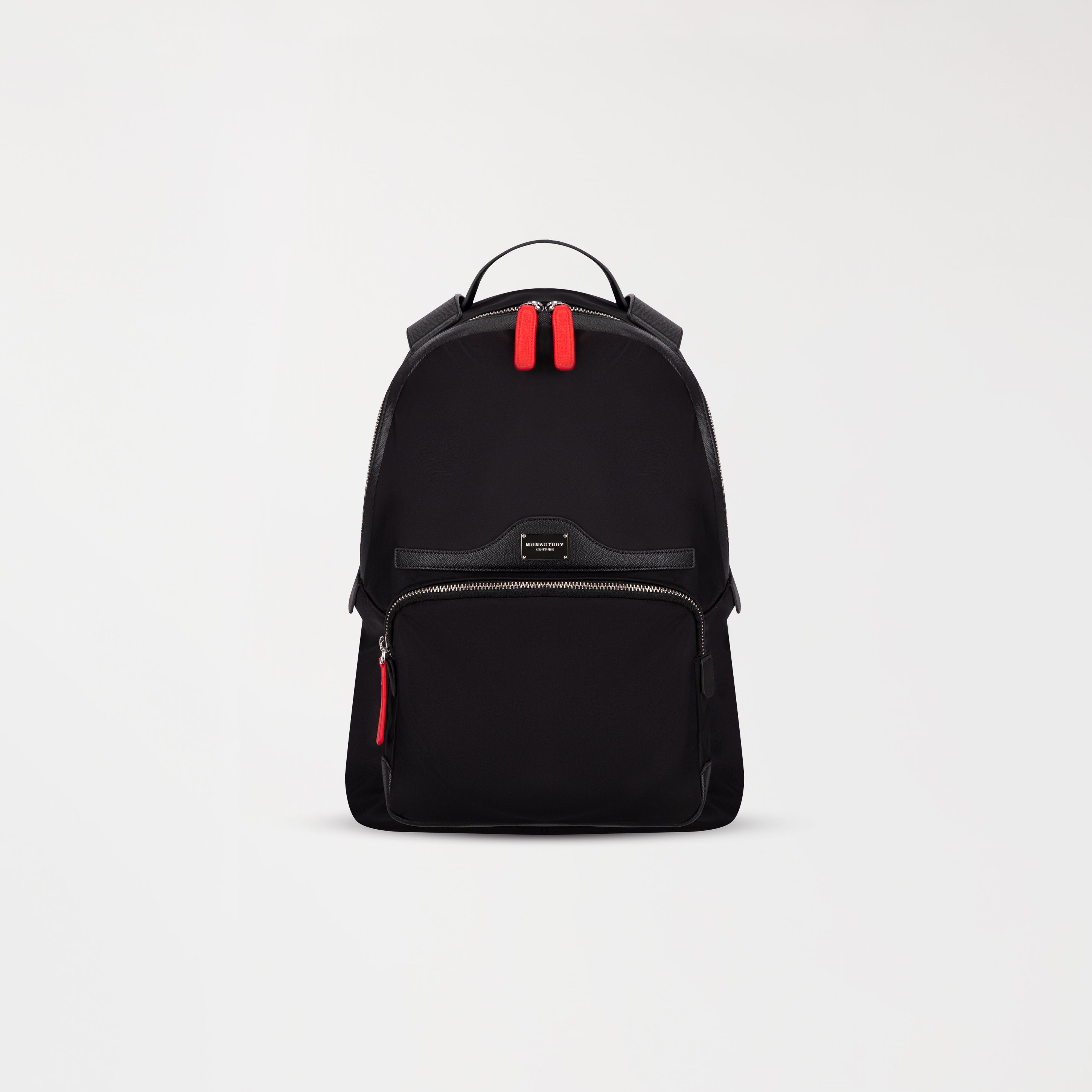 Backpack crafted from high-quality polyamide, designed to deliver lightness, durability, and a modern aesthetic. The front features a metallic appliqué that adds a refined accent, while the polyurethane back panel enhances structure and long-lasting performance.