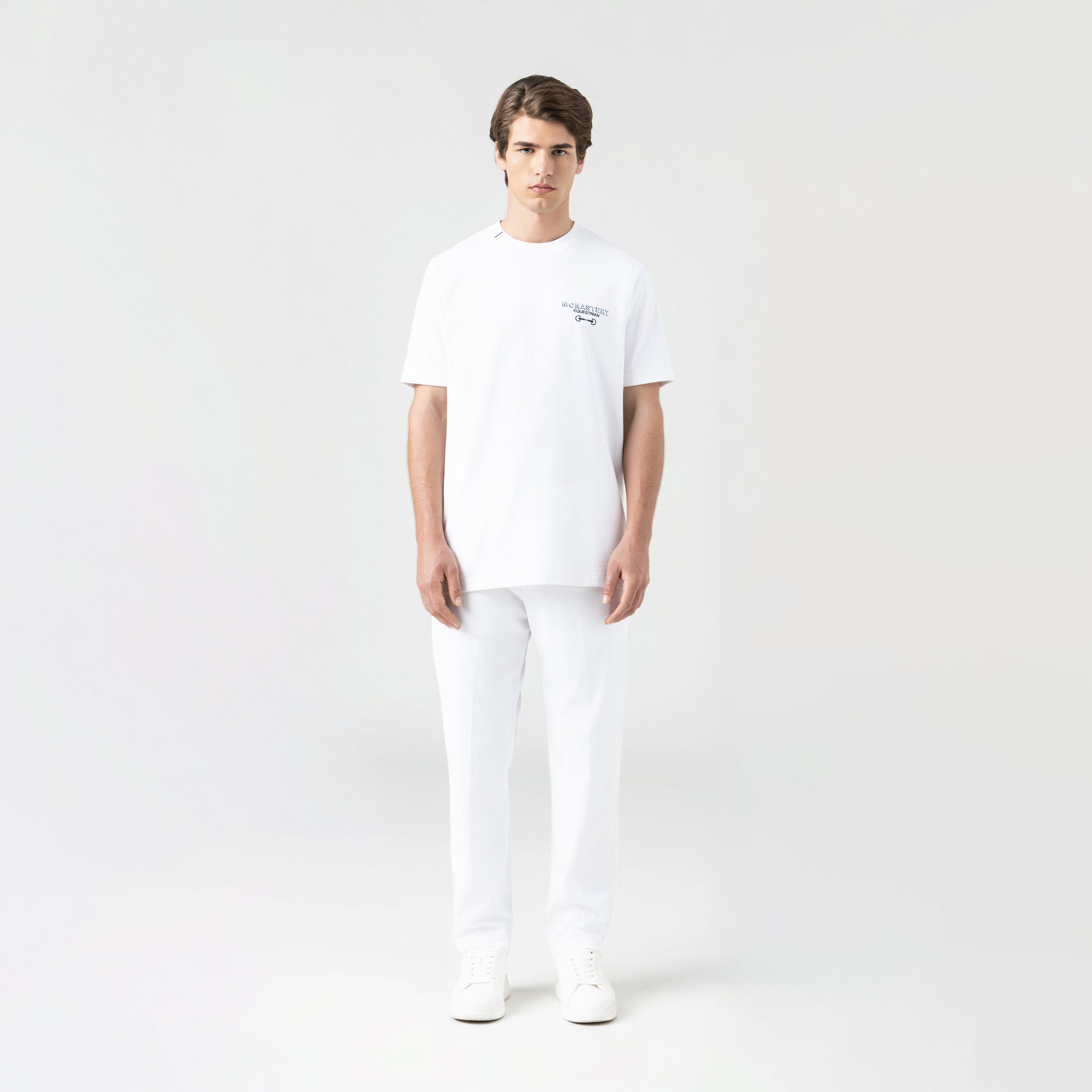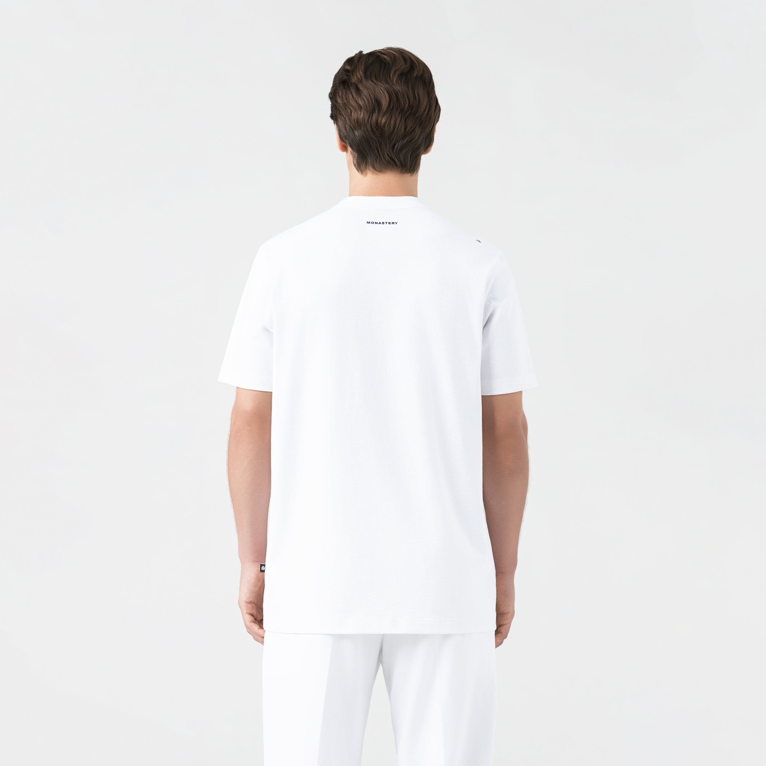 Dash es una t-shirt masculina que encarna la sutileza con carácter. Con silueta regular y cuello en rib de 2.5 cm, está confeccionada en algodón de alta calidad que asegura confort y una caída impecable. En el frente, un bordado plano aporta un gesto elegante y sobrio, mientras finas líneas bordadas en el lateral del cuello introducen un detalle inesperado y sofisticado. La espalda se impone con un estampado en alta densidad que equilibra la pieza con fuerza visual y personalidad. Una prenda concebida para quienes saben que el verdadero lujo reside en los detalles.