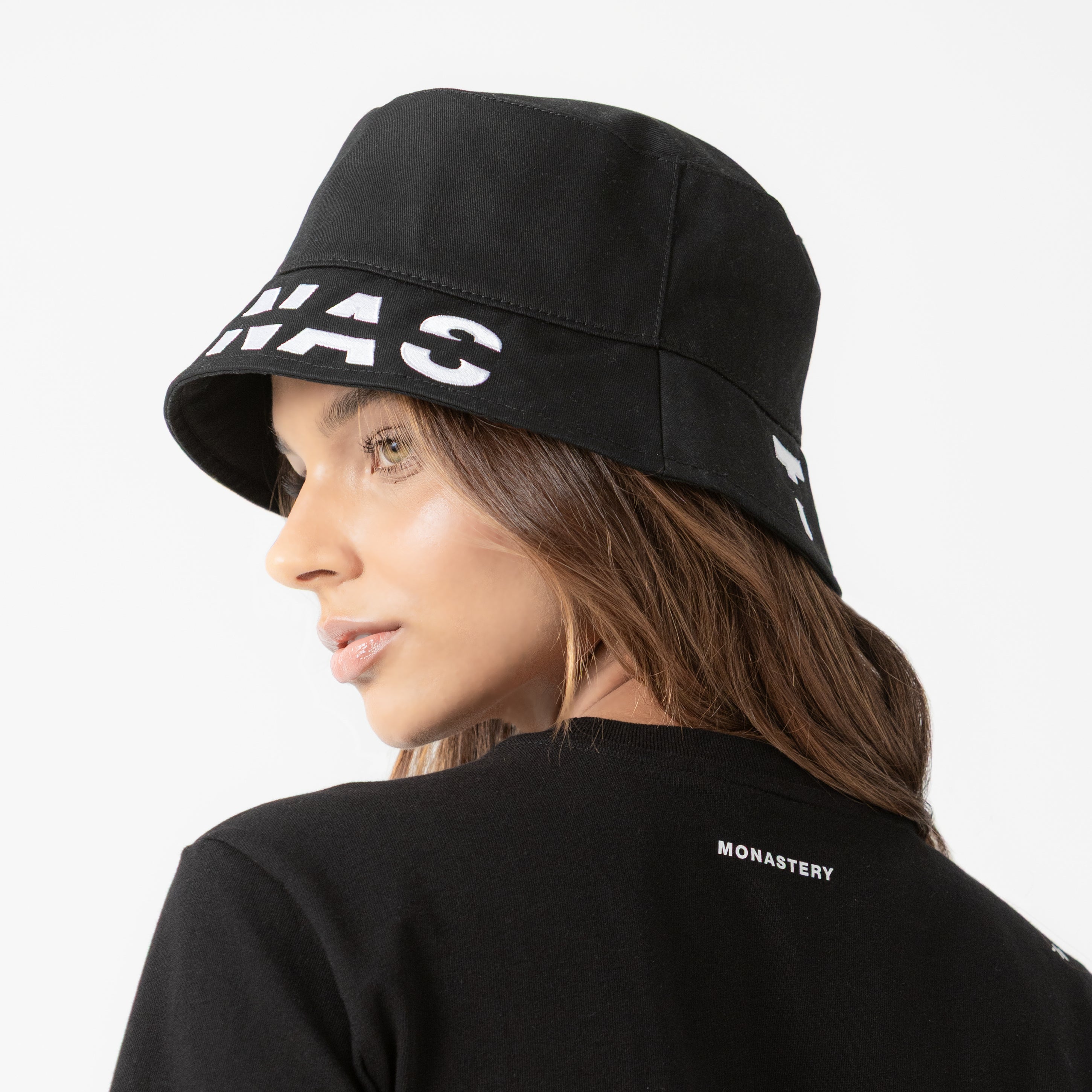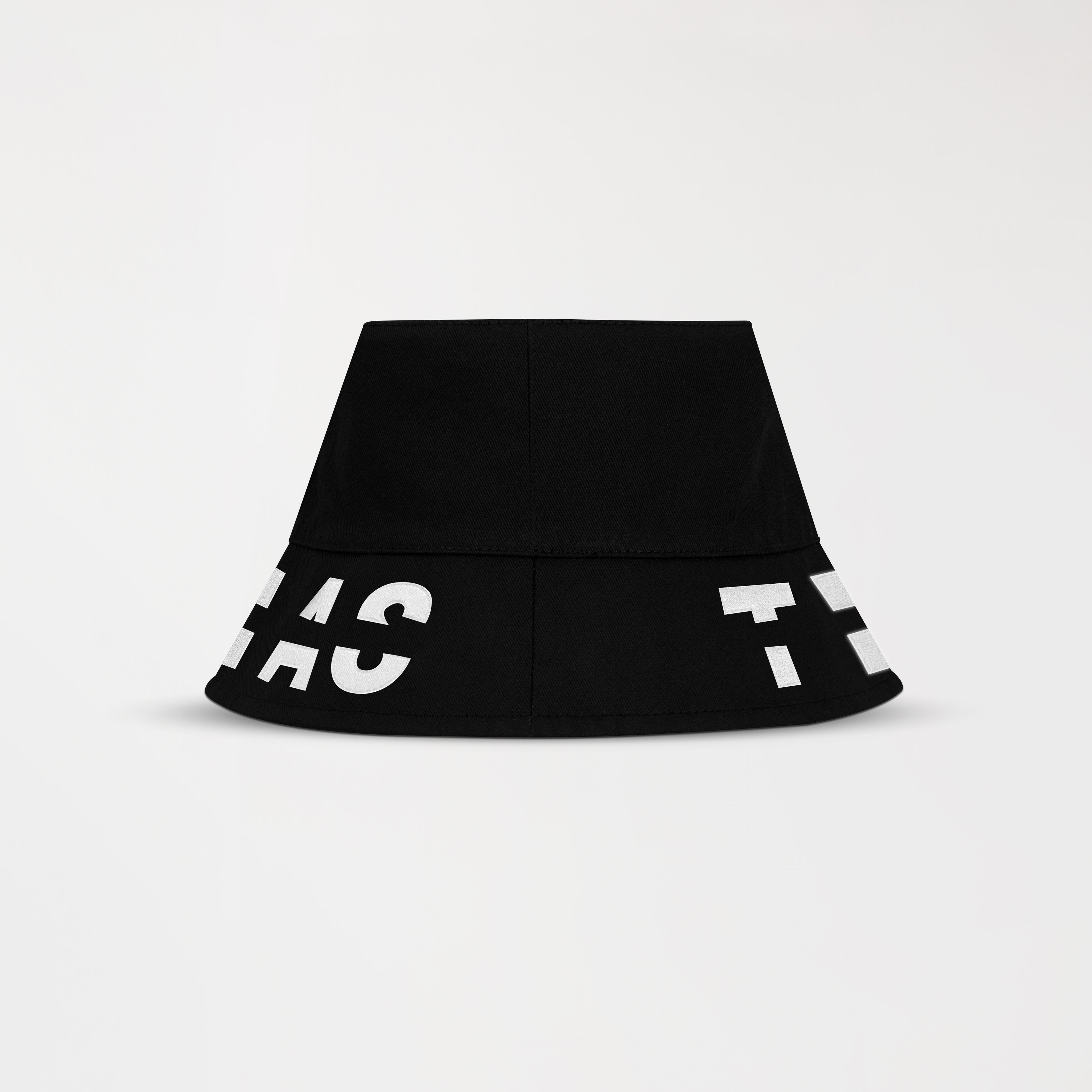 Unisex hat made of high-quality cotton, in an elegant black color that makes it a versatile and timeless piece. Repeated embroidery with our brand name is featured throughout its structure, offering a striking yet balanced visual. It is available in two versions: one with contrasting embroidery, ideal for those looking to stand out with a bolder style, and another in tone-on-tone, perfect for