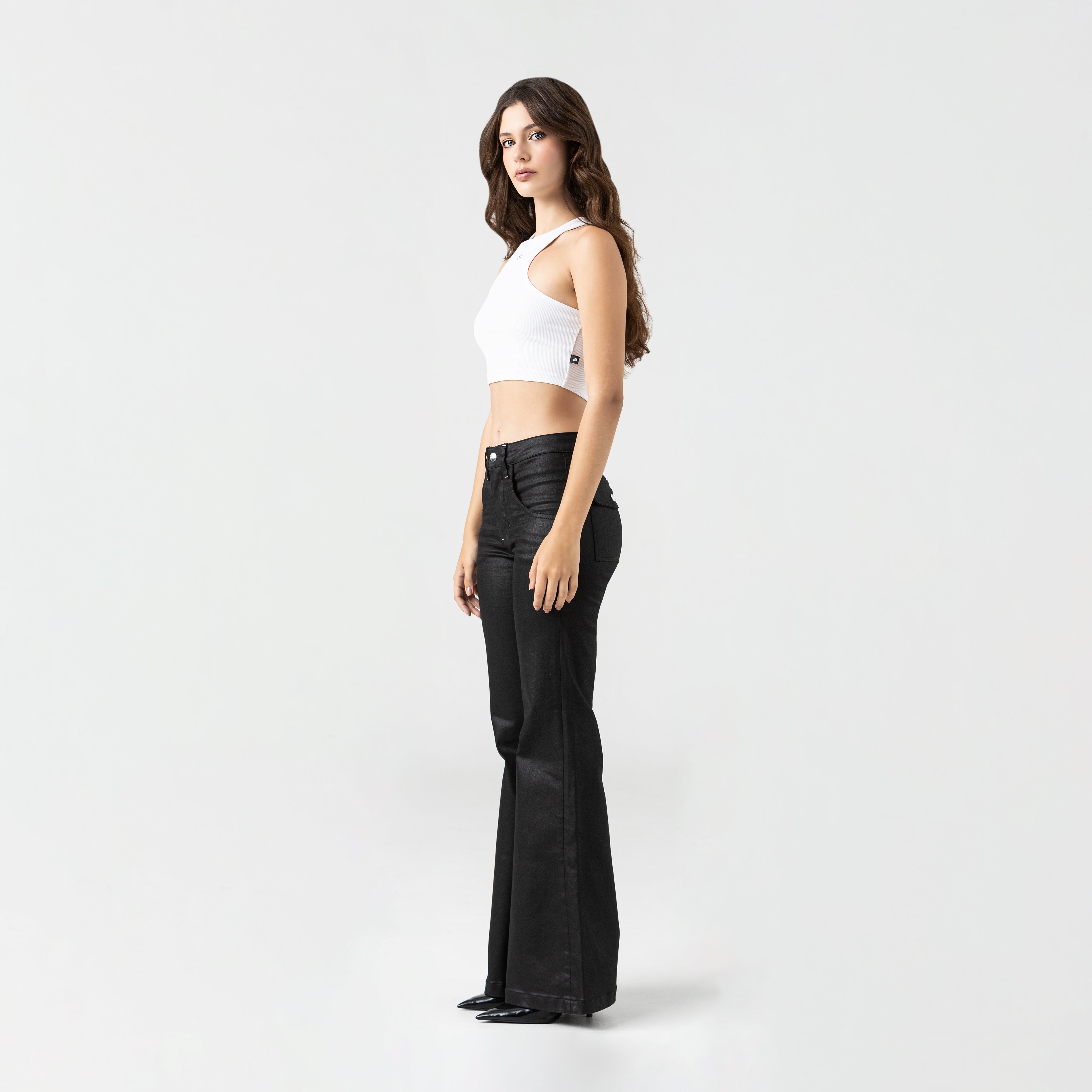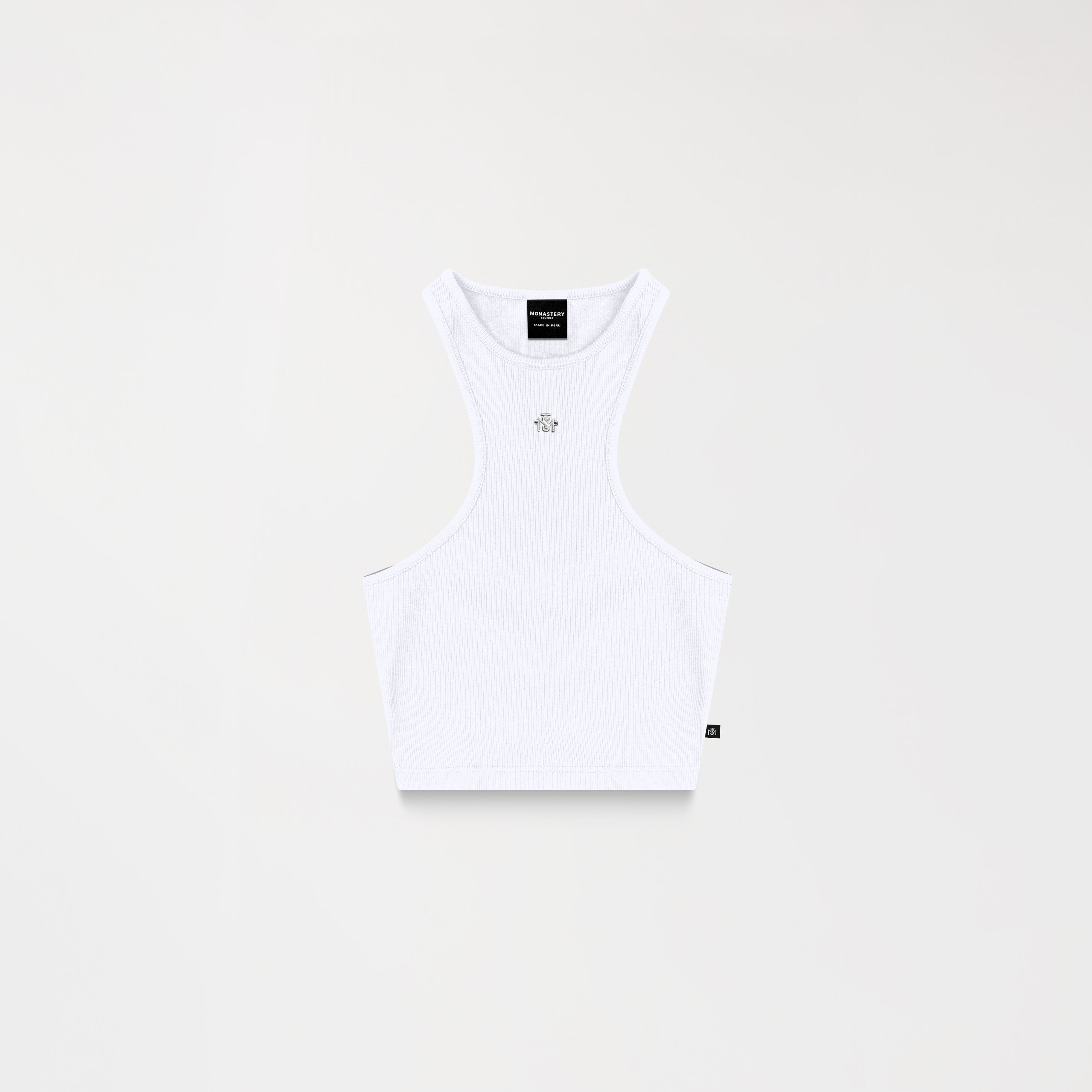 A feminine tank top crafted in rib exclusively for Monastery. With a clean, structured silhouette, Genna features a shiny silver TSM metallic trim that acts as the main visual accent on the front, while the back features a Monastery countermarked trim. The trims in a special silver finish have been exclusively designed, highlighting the value of each detail, reinforcing its identity with a sober and precise aesthetic.