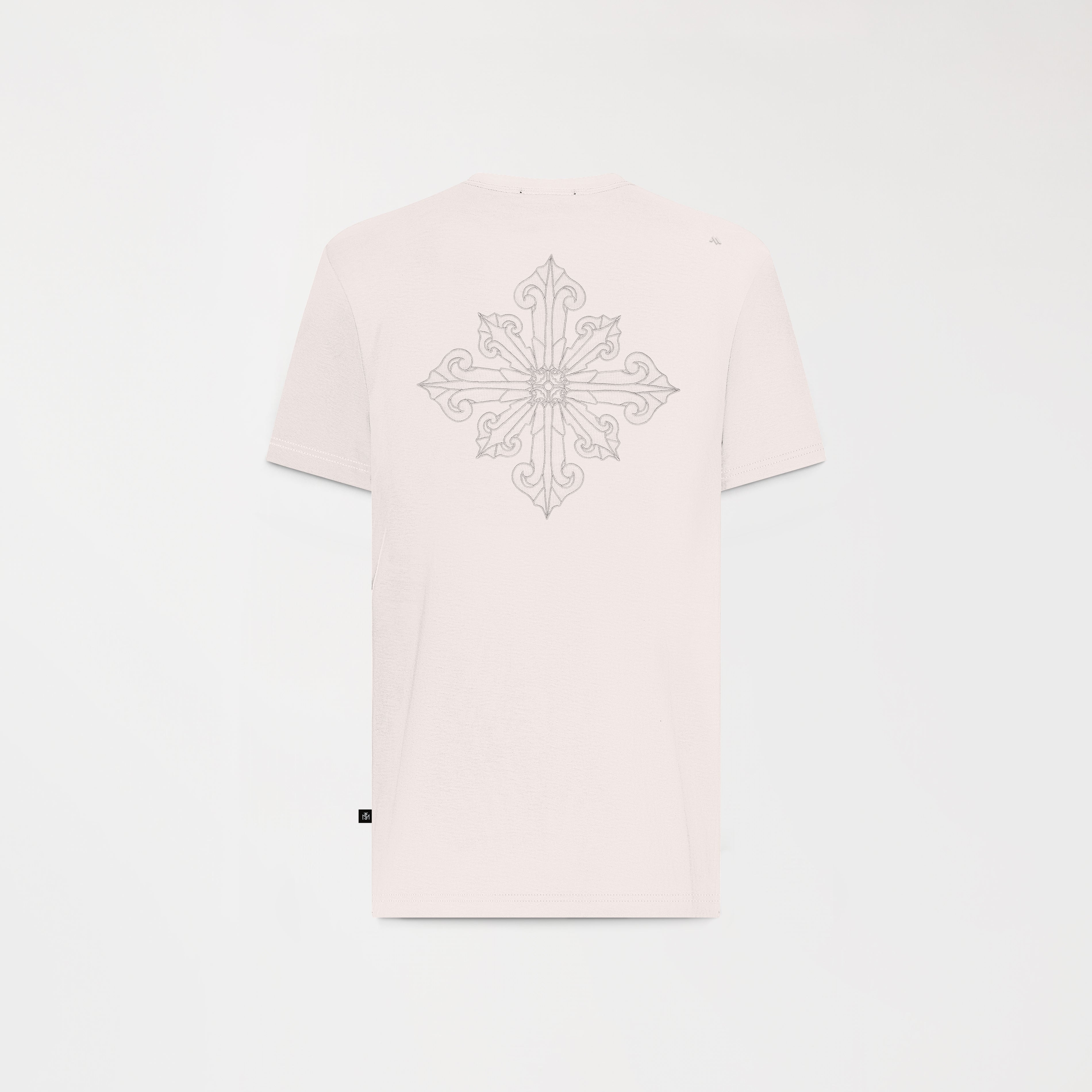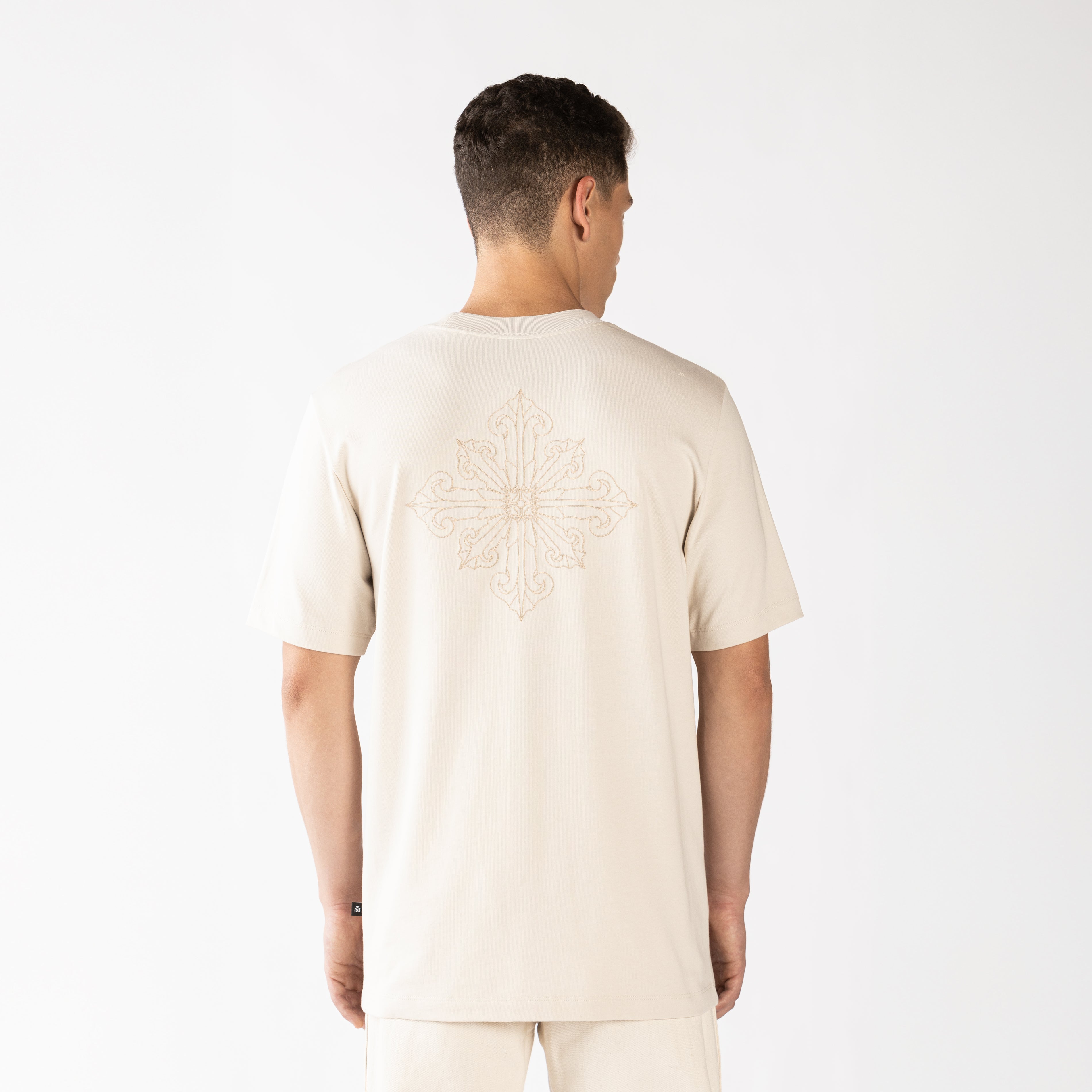 Moonbeam men's t-shirt in regular fit, made in soft cotton, this t-shirt features a 3 cm collar for comfort and style. The front features embroidered heart stitch artwork, while the back features a striking 3D cross embroidered design. In addition, the logo logos are printed in high density, adding a classic and distinctive touch. Ideal for those looking for a modern look with character.