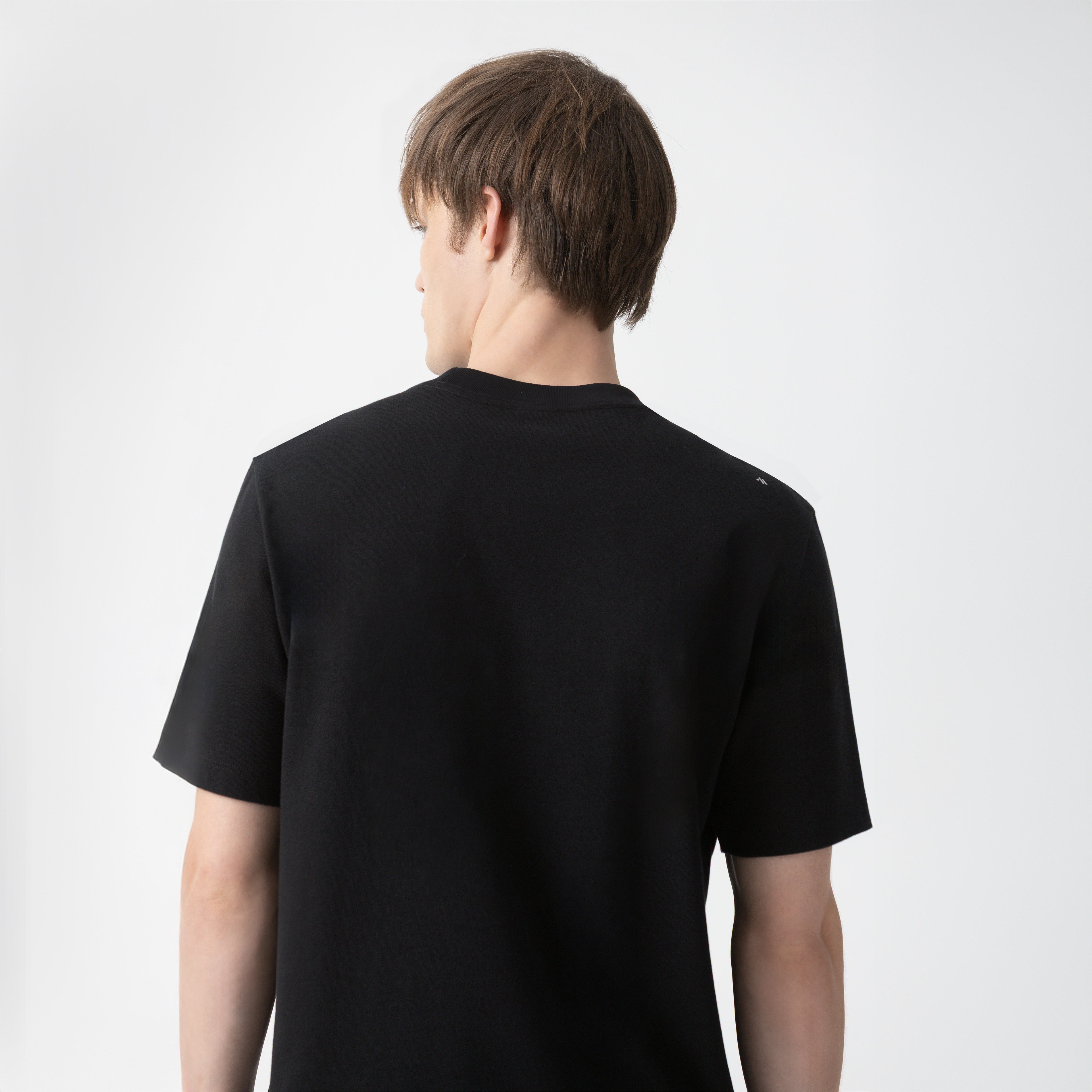 Hudson is a men's regular-fit t-shirt made from Monastery 2 fabric, a premium cotton that provides softness and structure.It features a distinctive triangular detail at the neckline that reinforces its technical design. On both the front and back, the logo is applied using a silver foil technique, creating metallic reflections that enhance its visual presence.