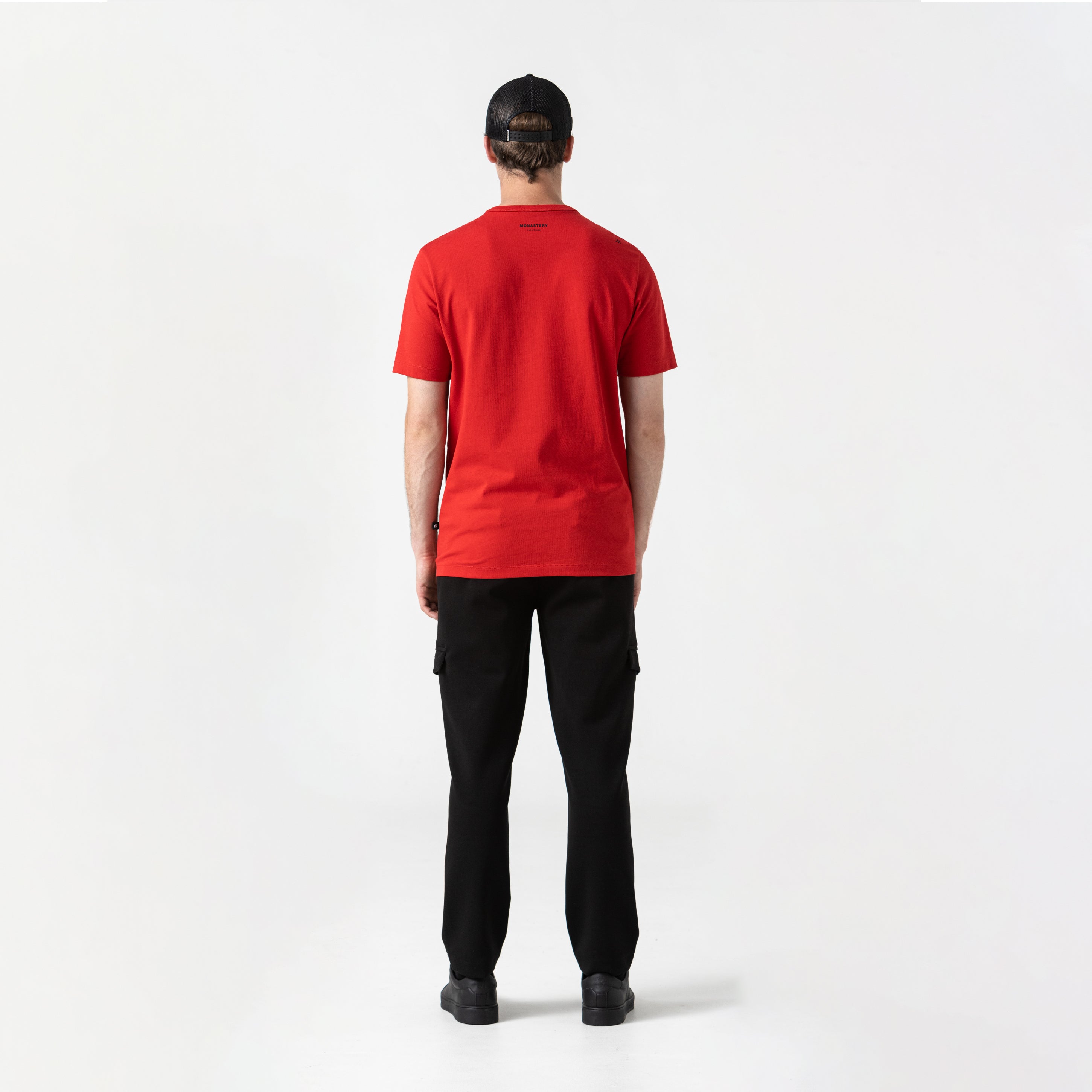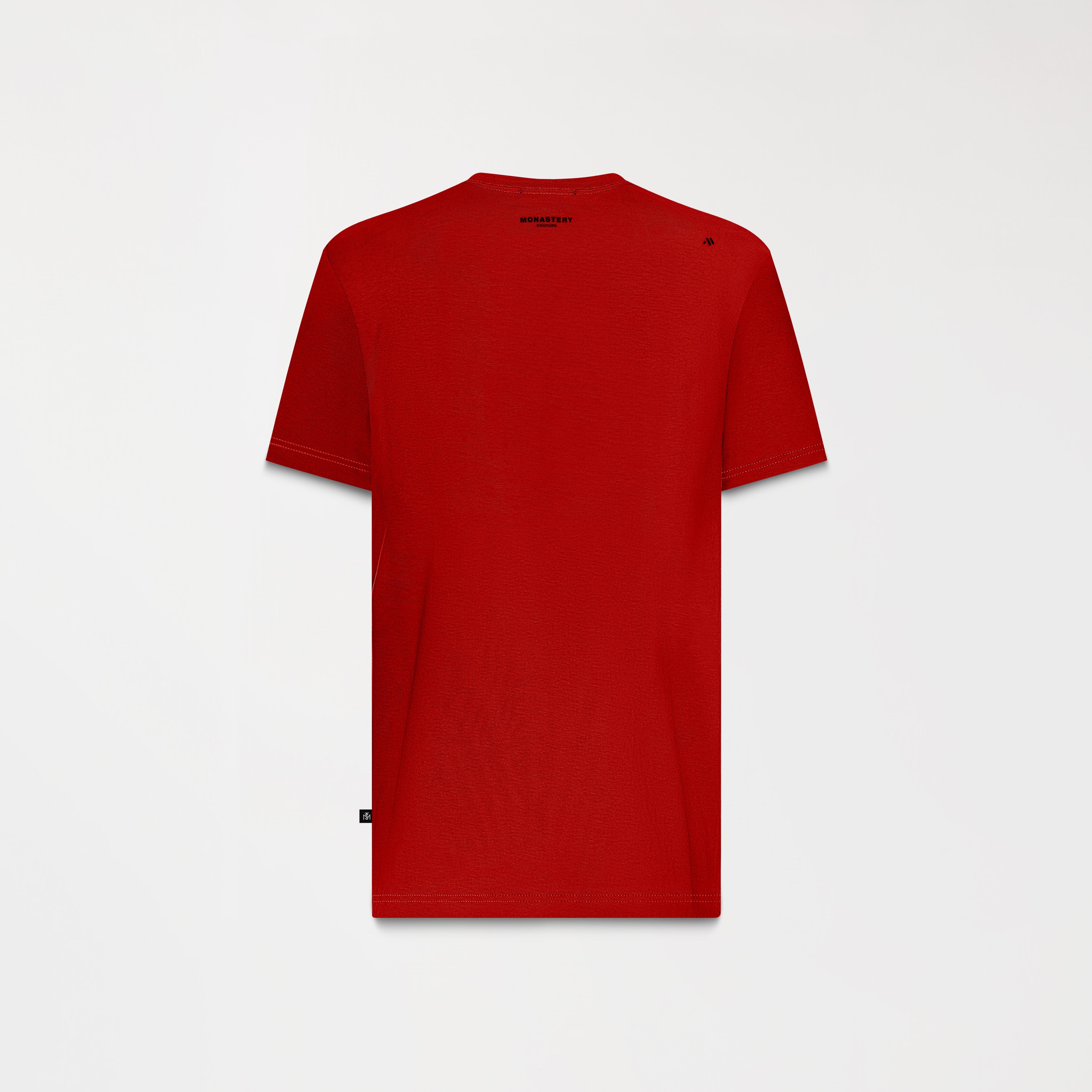 Designed for those who appreciate graphic detail and quality finishes. Made from Monastery fabric, it offers a soft, durable texture and excellent drape. Its design incorporates a 2.5 cm ribbed collar, which provides structure and definition to the silhouette. The graphic combines two complementary techniques: a high-density print, which provides texture and volume, along with a flat plastisol, which balances with precision and visual clarity. A garment that stands out for its graphic character and impeccable execution—ideal for style-conscious looks.