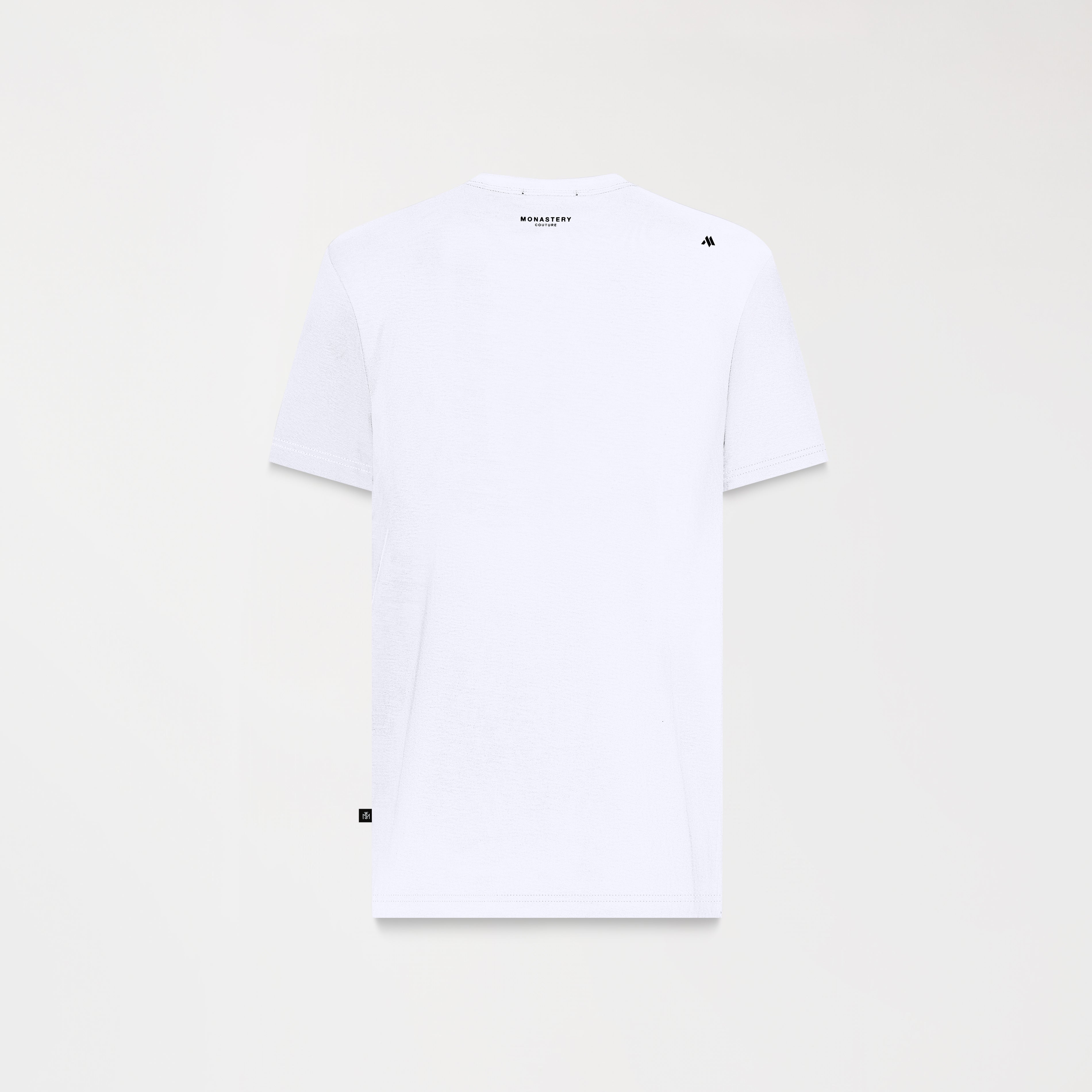 Designed for those who appreciate graphic detail and quality finishes. Made from Monastery fabric, it offers a soft, durable texture and excellent drape. Its design incorporates a 2.5 cm ribbed collar, which provides structure and definition to the silhouette. The graphic combines two complementary techniques: a high-density print, which provides texture and volume, along with a flat plastisol, which balances with precision and visual clarity. A garment that stands out for its graphic character and impeccable execution—ideal for style-conscious looks.