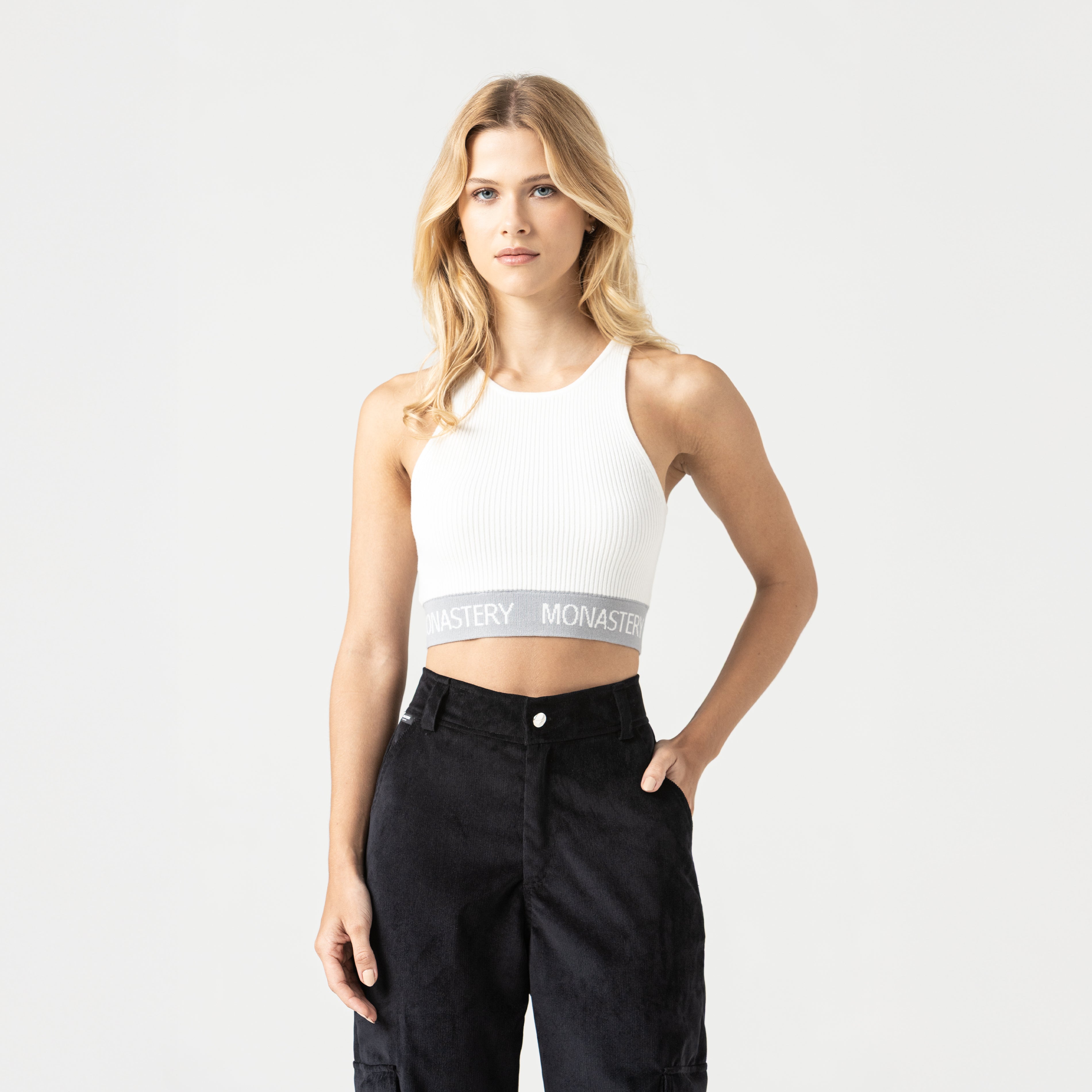 Knitted top crafted in a basic silhouette with a ribbed textile base that allows it to fit the body, providing comfort, elegance, and versatility. Hywel features a Monastery-embossed elastic band around the entire garment and our iconic embroidered insignia logo in a contrasting tone on the back. This garment is perfect and ideal for any occasion and can be combined with any of our brand's garments.