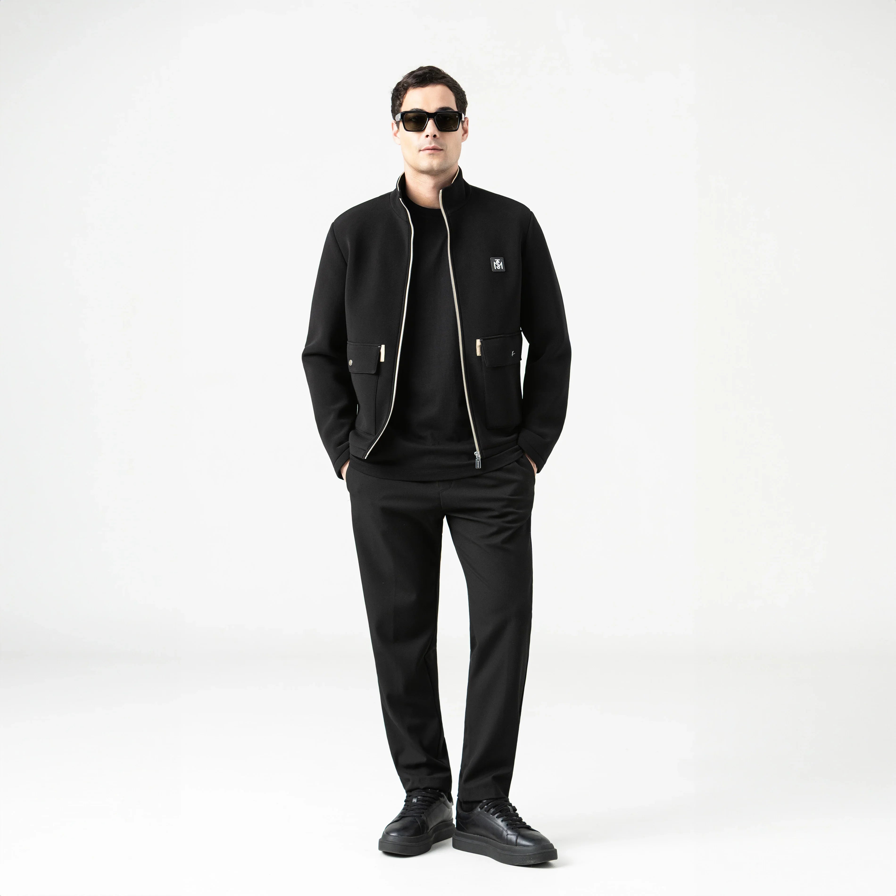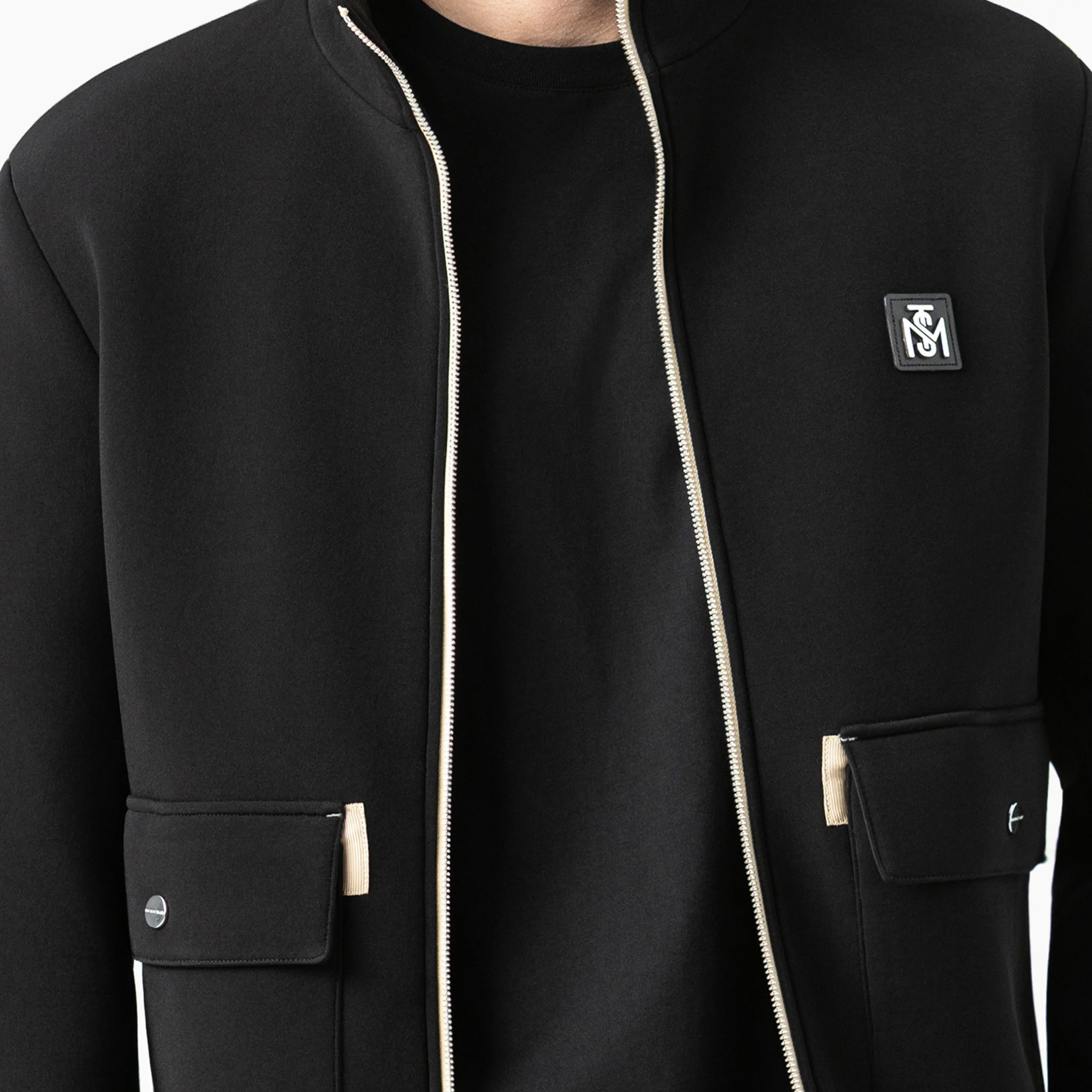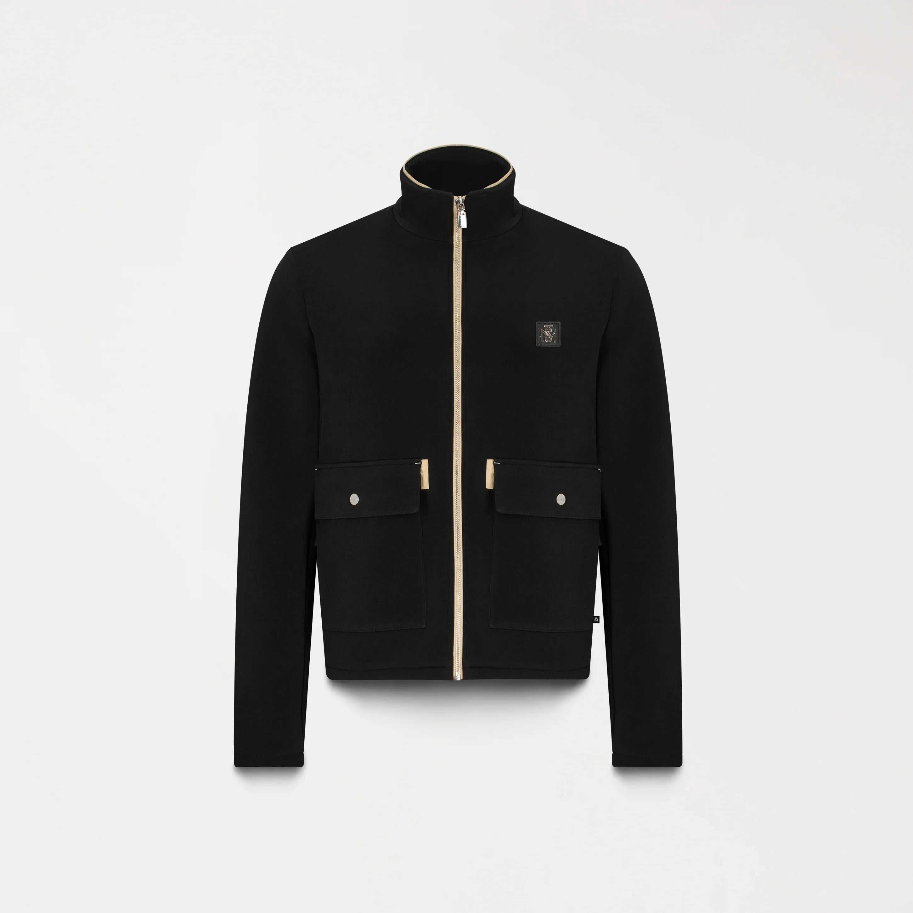 Chaqueta deportiva masculina confeccionada en base textil doble face de alta calidad, que combina funcionalidad y estilo con acabados premium. Los bolsillos frontales con botón de presión contramarcado y la cremallera separable con slider igualmente contramarcado refuerzan la identidad Monastery en cada detalle. En el frente, un aplique metálico sobre cuero aporta sofisticación y presencia, mientras que la espalda luce artes en alta densidad, creando un impacto visual gráfico que resalta carácter y distinción. Una prenda pensada para un look elegante, urbano y contemporáneo, donde cada elemento comunica estilo y actitud.