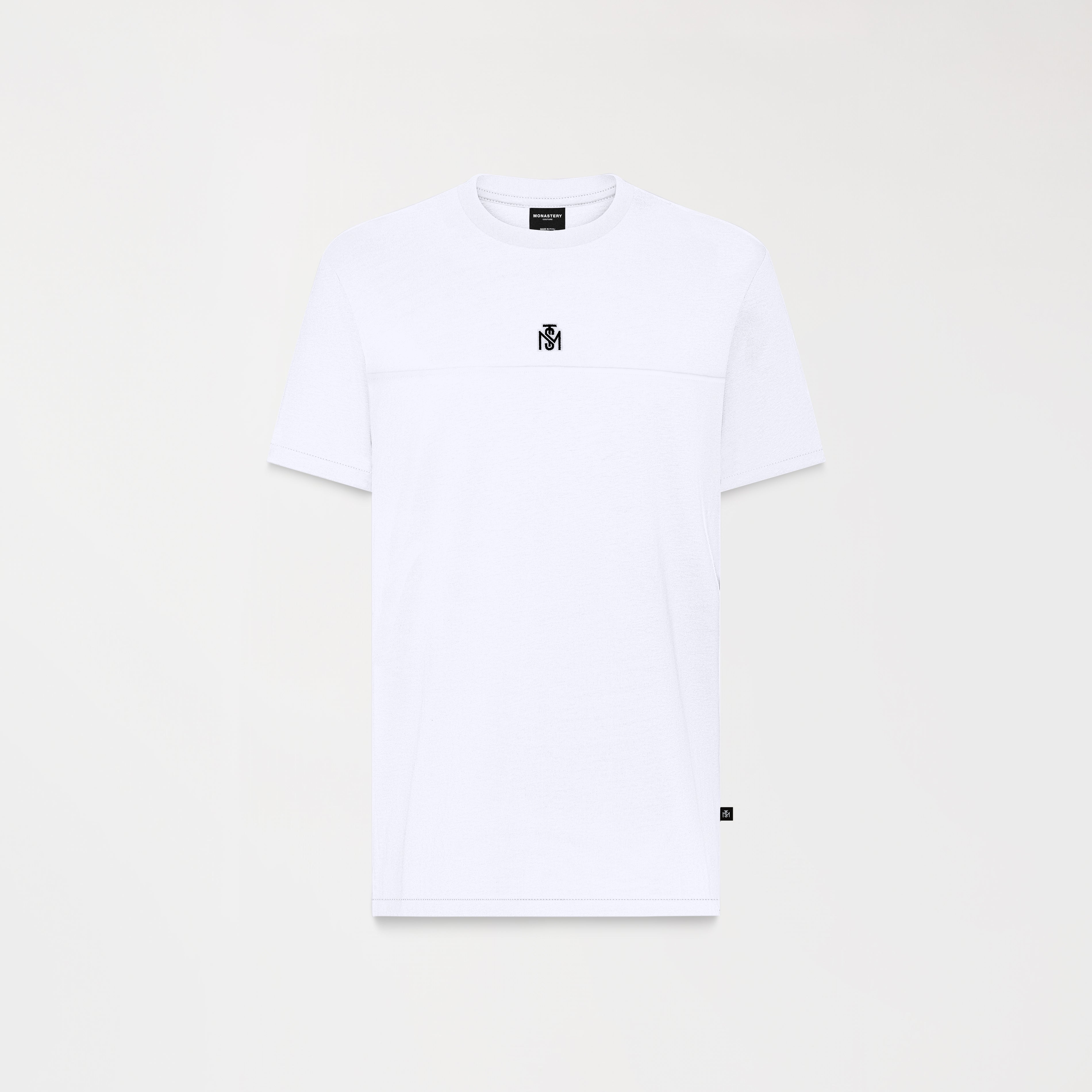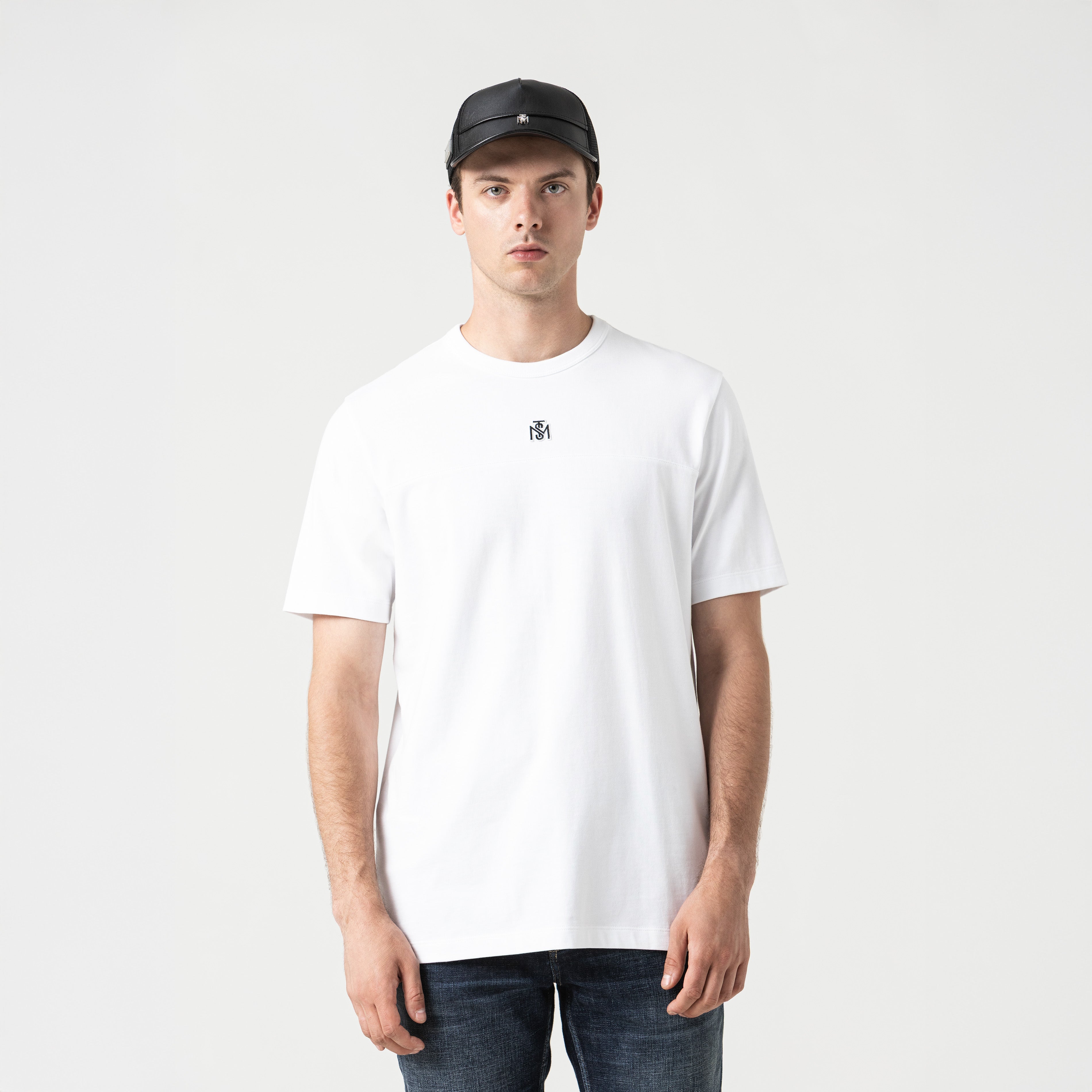 A 100% cotton men's T-shirt exclusively for Monastery, crafted in a regular silhouette with a bias collar cut at chest level. It features the iconic TSM logo embroidered in thread on the center front and high-density insignia logos on the back. Macalan is a dynamic garment that brings elegance and versatility to your wardrobe.
