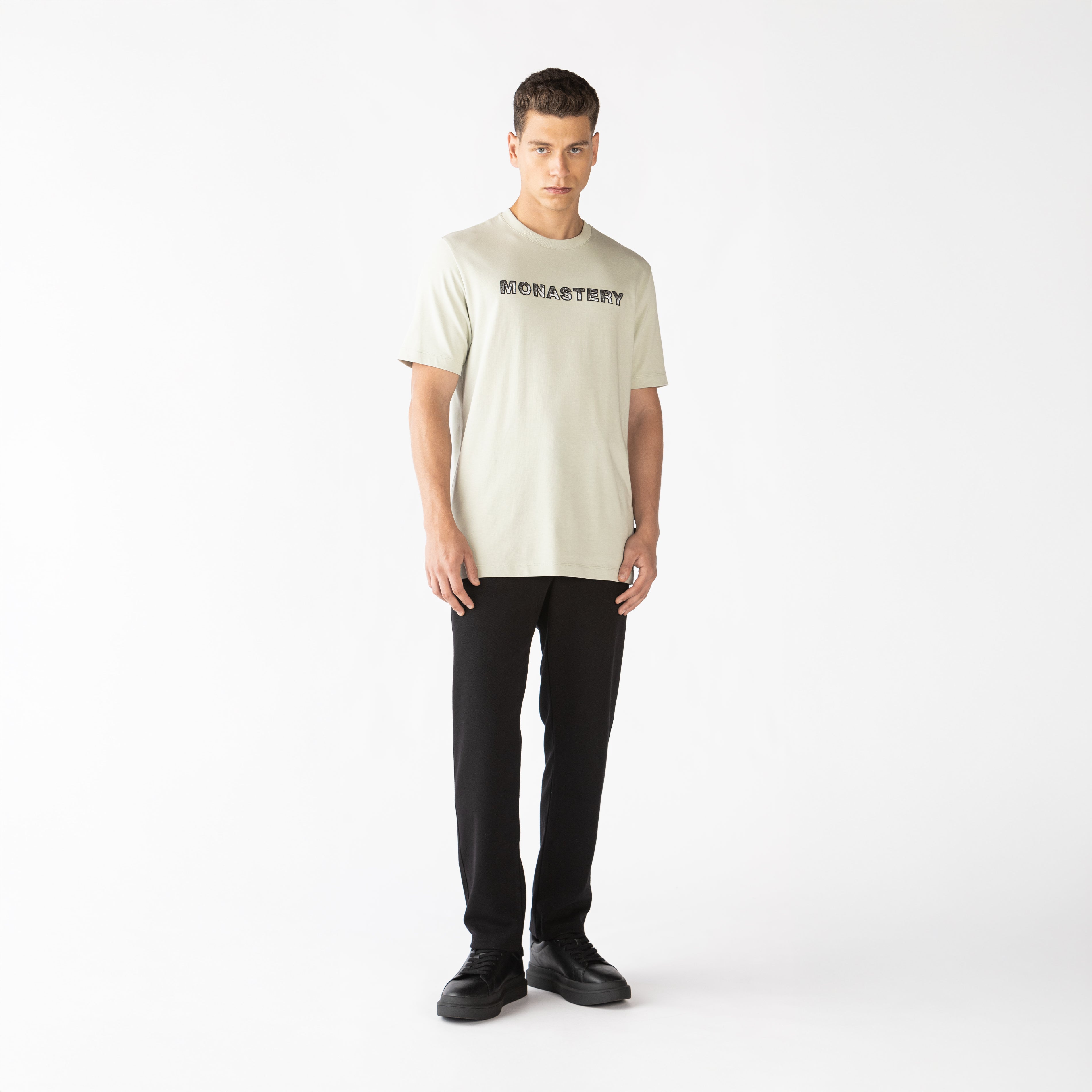 Mineral Gray men's T-shirt in regular silhouette, made in exclusive Monastery cotton, this T-shirt combines style and comfort. It features flat printed artwork with embroidered outline on the front, creating an attractive and modern contrast. In addition, high-density logo artwork on the back adds a distinctive and elegant touch. Perfect for a contemporary and sophisticated look.