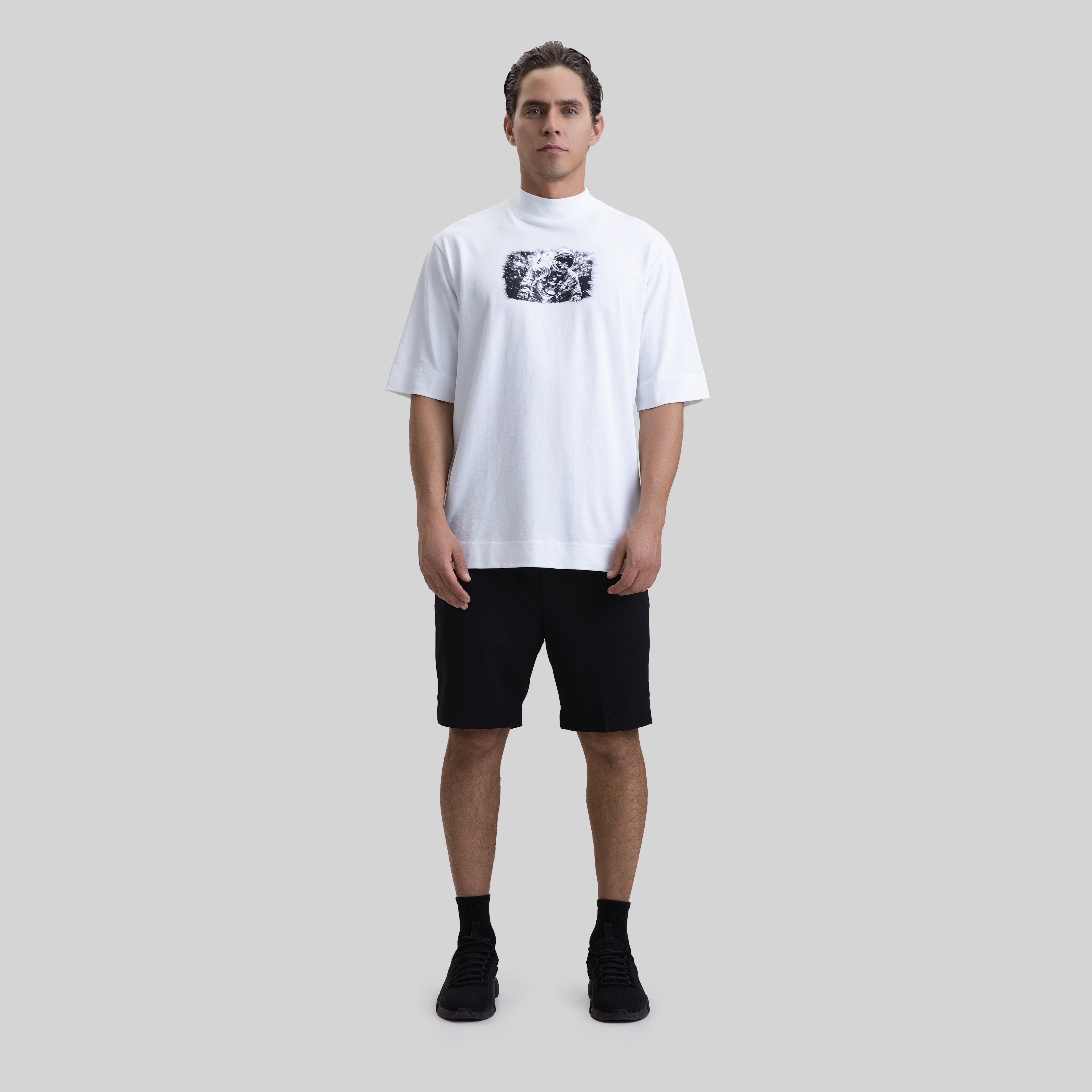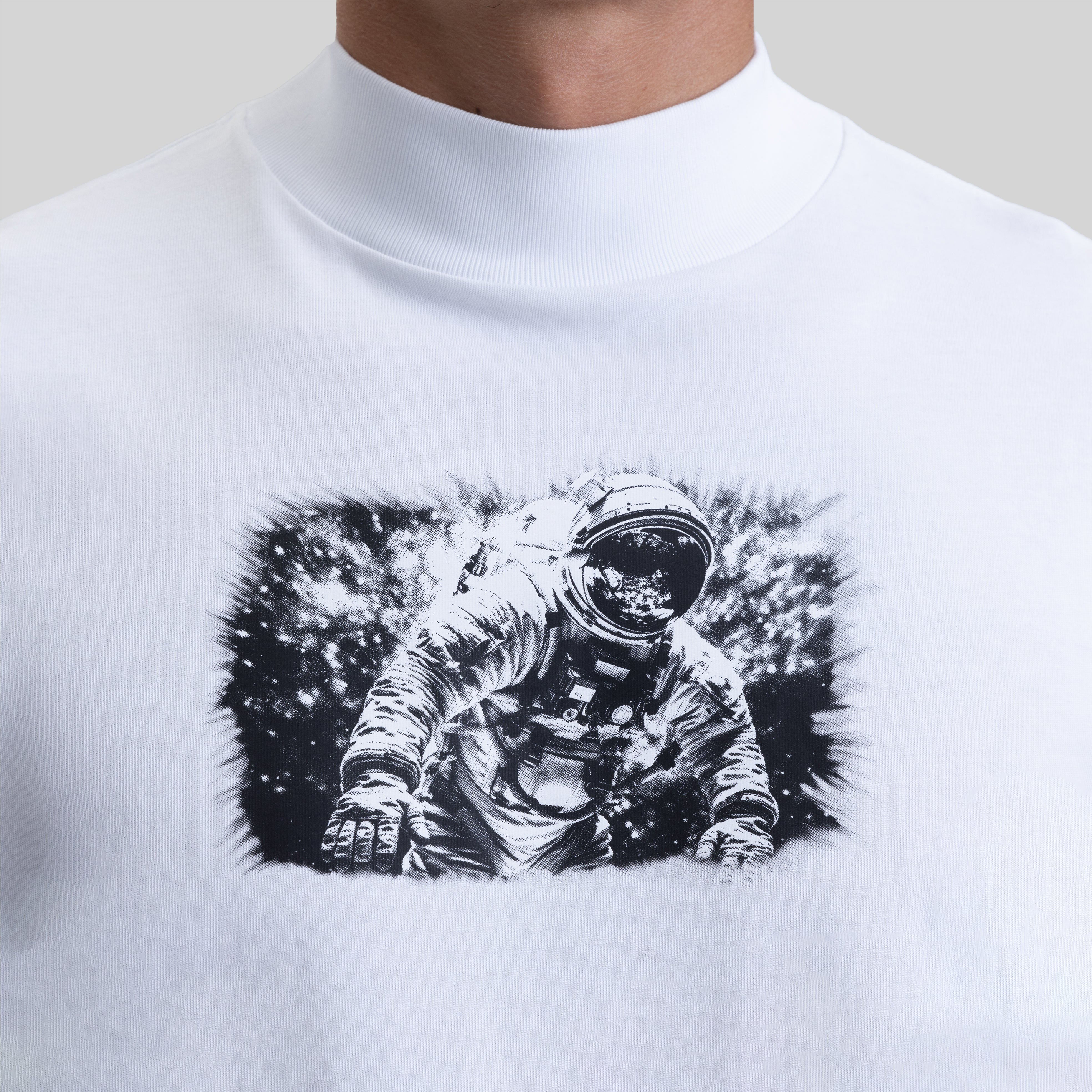 Rouge is a men's oversize t-shirt, made in Peruvian cotton exclusively for Monastery. This garment features our iconic Phillip the Astronaut weave print in the center front, and on the back, our logo printed in high density. Rouge is a garment with renewed details, such as its 5 cm collar, making it a must-have item in your wardrobe.