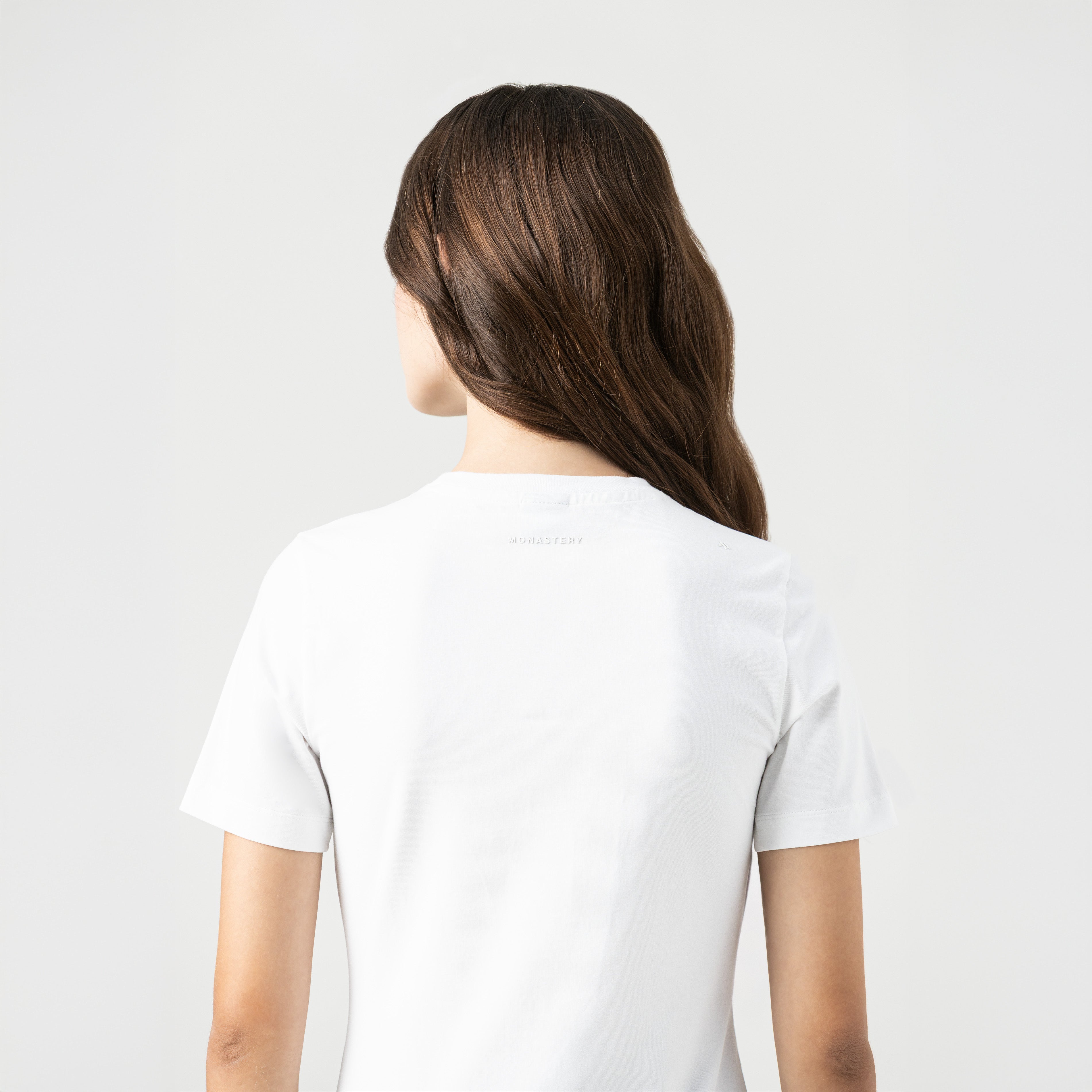 Women's T-shirt with a small silhouette, made from high-quality Peruvian cotton, designed to enhance the figure with style and originality. It features a caviar print on the front, providing texture and a sophisticated finish, while the back incorporates traditional artwork in a high-density print, creating a visual and tactile contrast that highlights its unique identity. The Saylor T-shirt is ideal for those looking for a garment with character, detail, and quality.