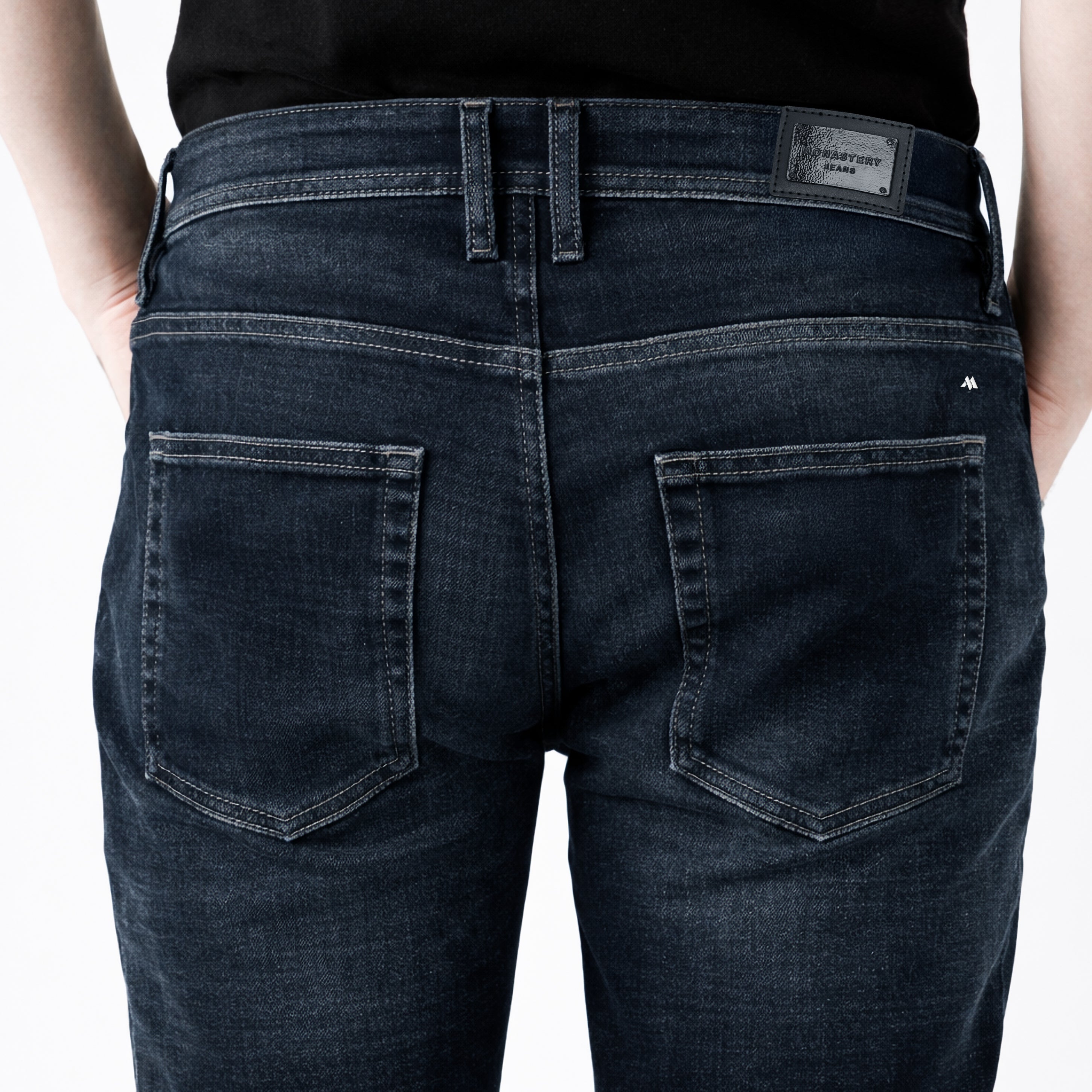 Designed with a Slim Stretch silhouette, it redefines the balance between structure and freedom of movement. Crafted from a premium 11 oz. fabric, its precise blend of 66% cotton, 18% polyester, 4% viscose, and 2% elastane offers a superior feel, durability, and a flawless fit.