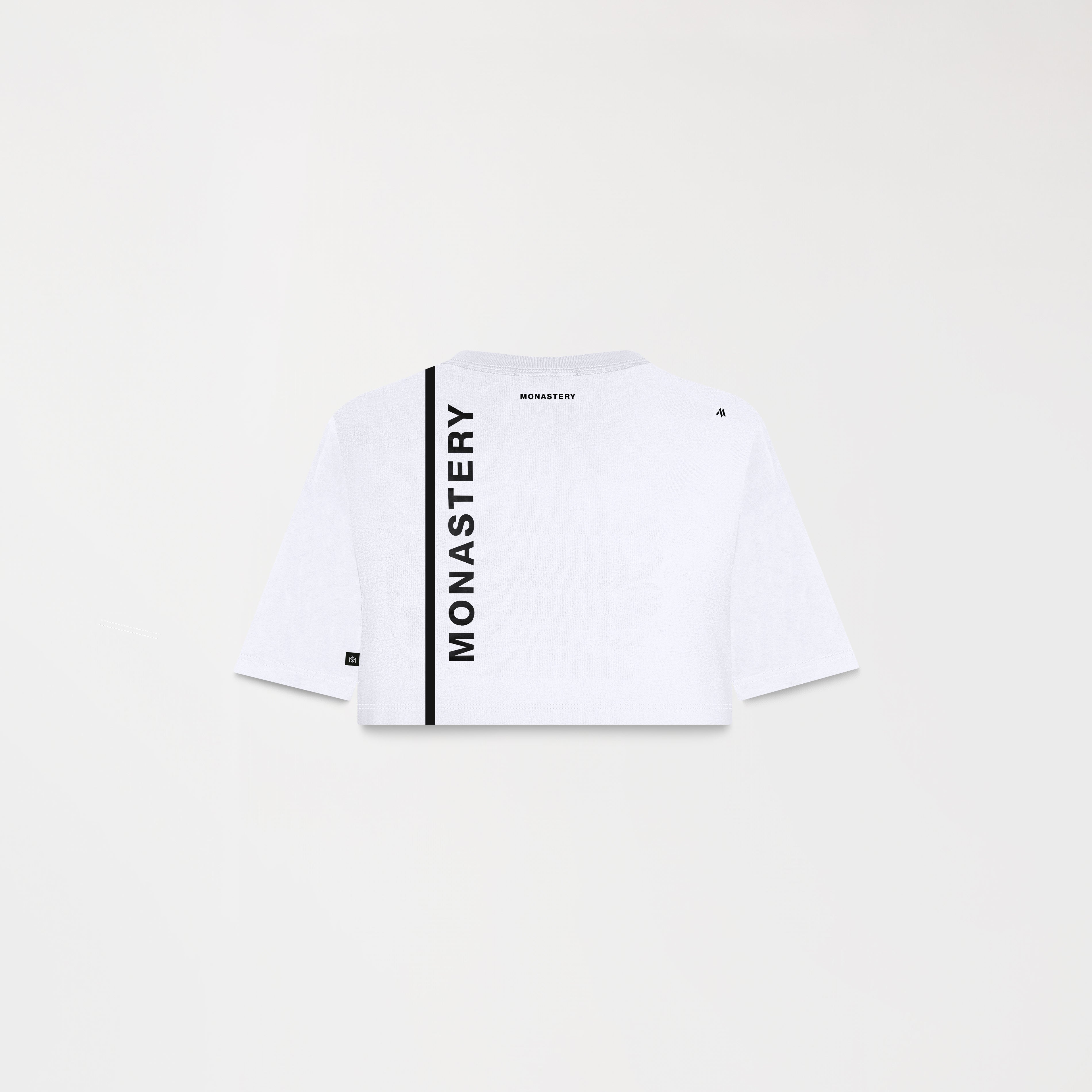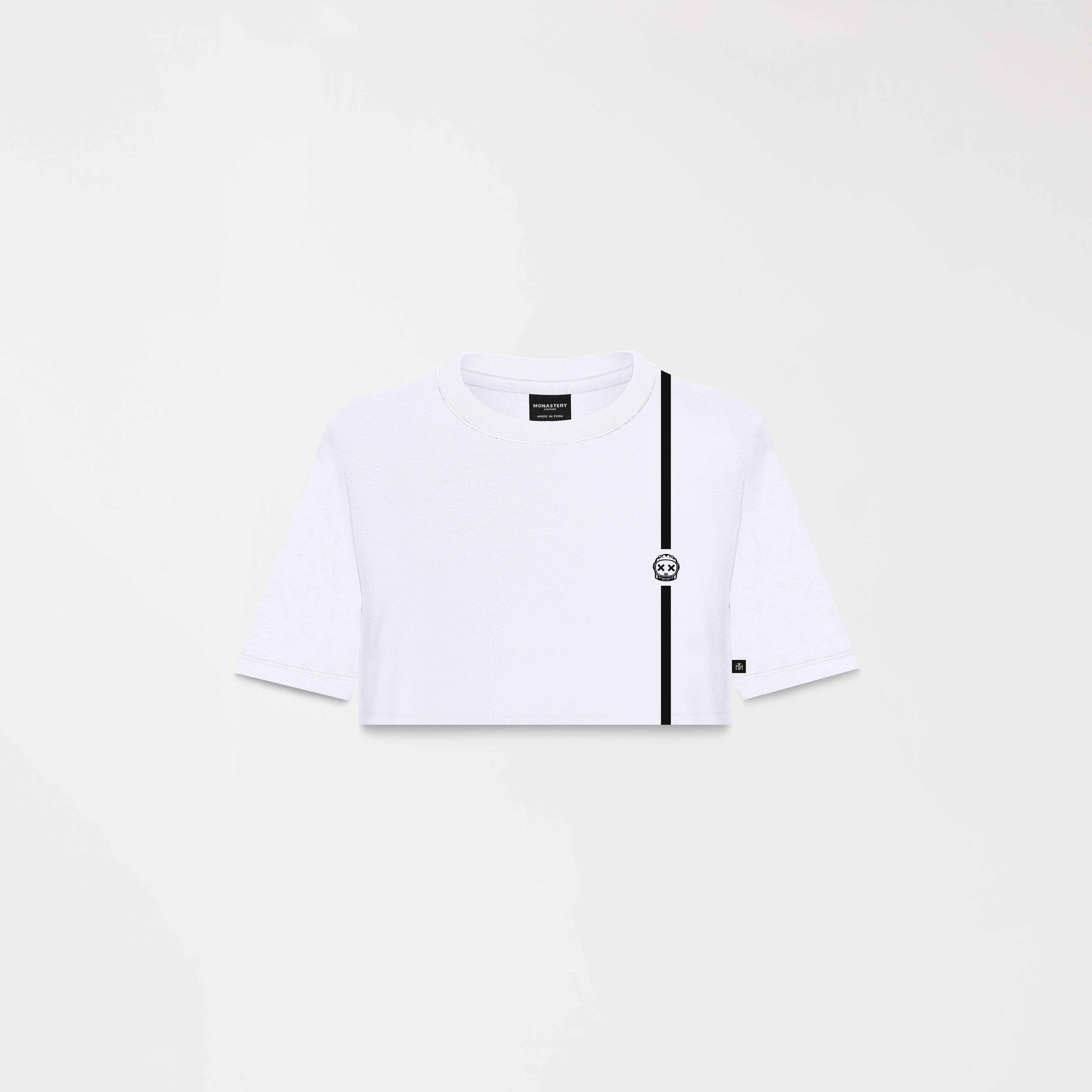 The Seiko crop top is designed with a modern fit. The front features the Monastery and Phillip logos printed in flat plastisol, providing a clean and contemporary finish. The back features plastisol insignia in a contrasting tone, applied using a high-density technique for a striking visual effect and greater durability. Made of high-quality Peruvian cotton, which guarantees softness, comfort, and durability.