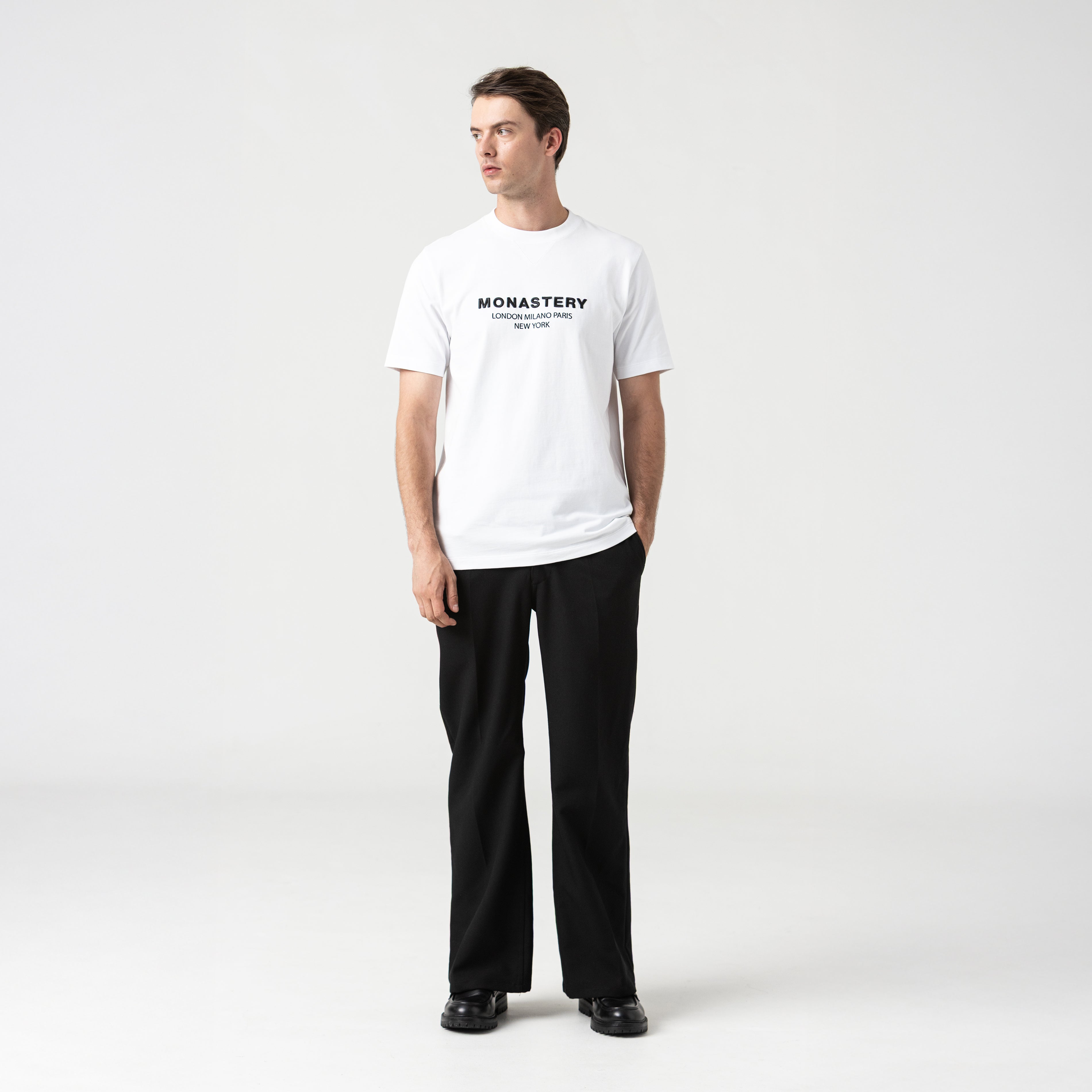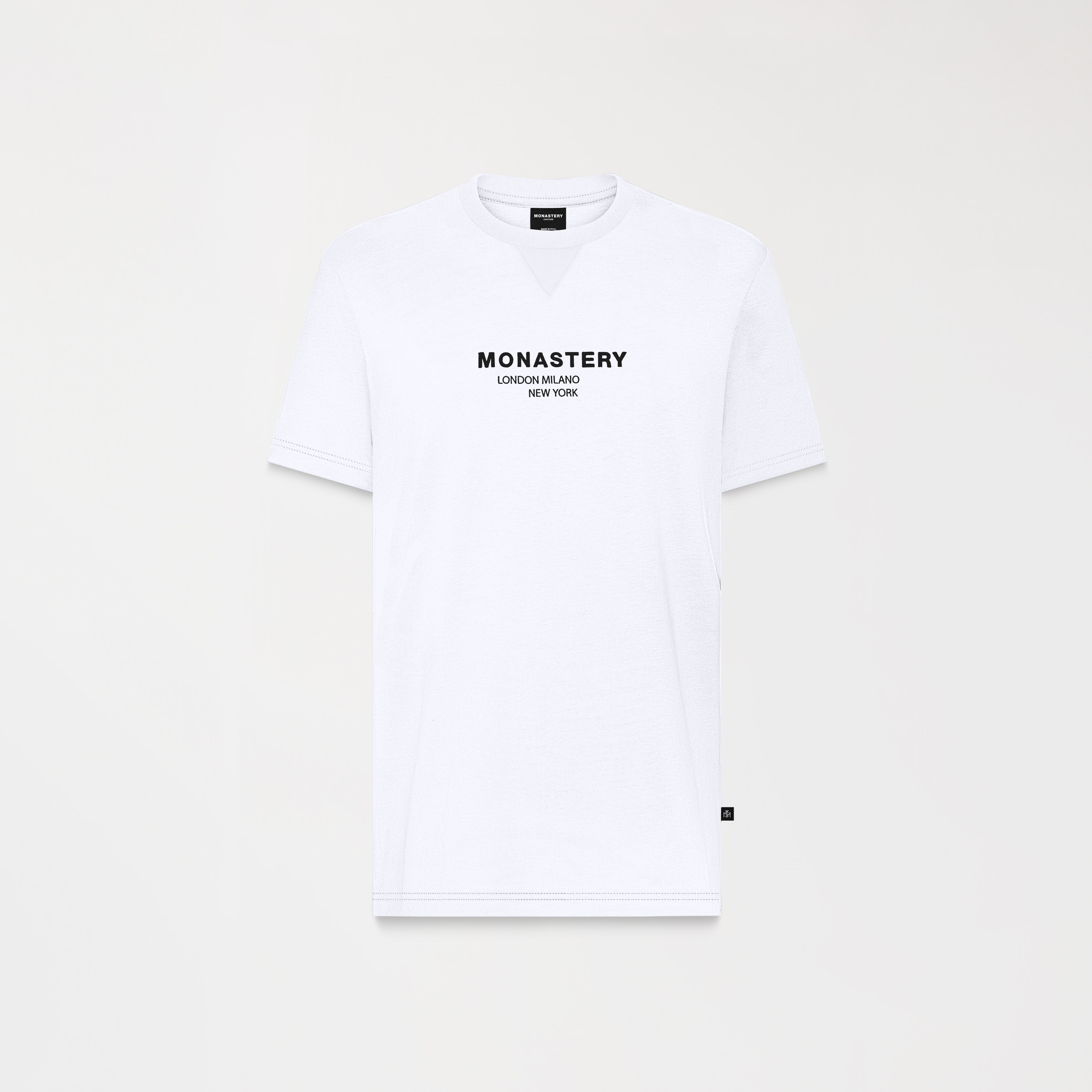 Sharam is a men's t-shirt, made from 100% Peruvian cotton exclusively for Monastery. On the front, this garment features our iconic Monastery logo accompanied by the cities that represent our DNA, using 3D and flat embroidery techniques. Sharam is a garment with updated details, such as its 2.5cm ribbed triangle neckline, making it a staple in your wardrobe.