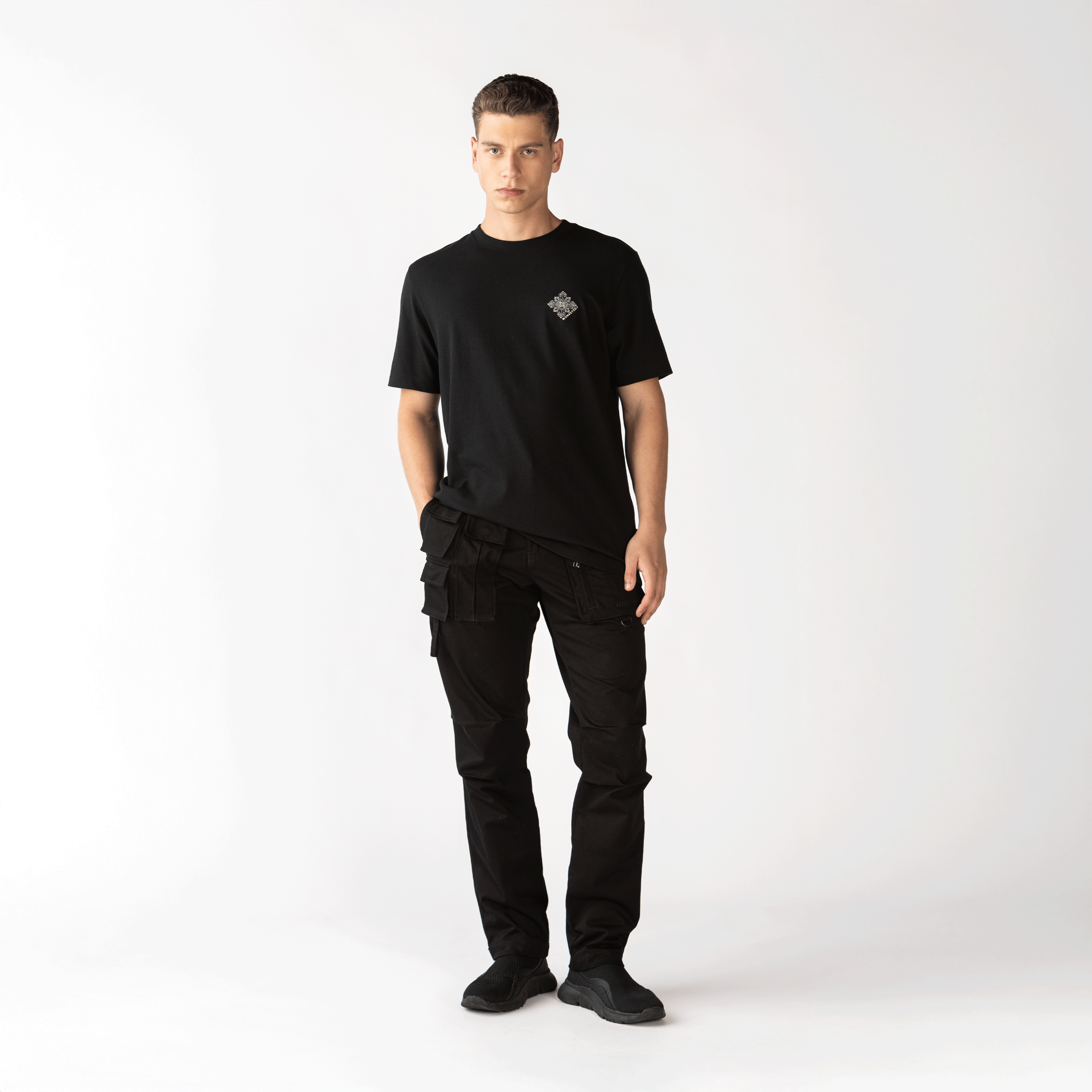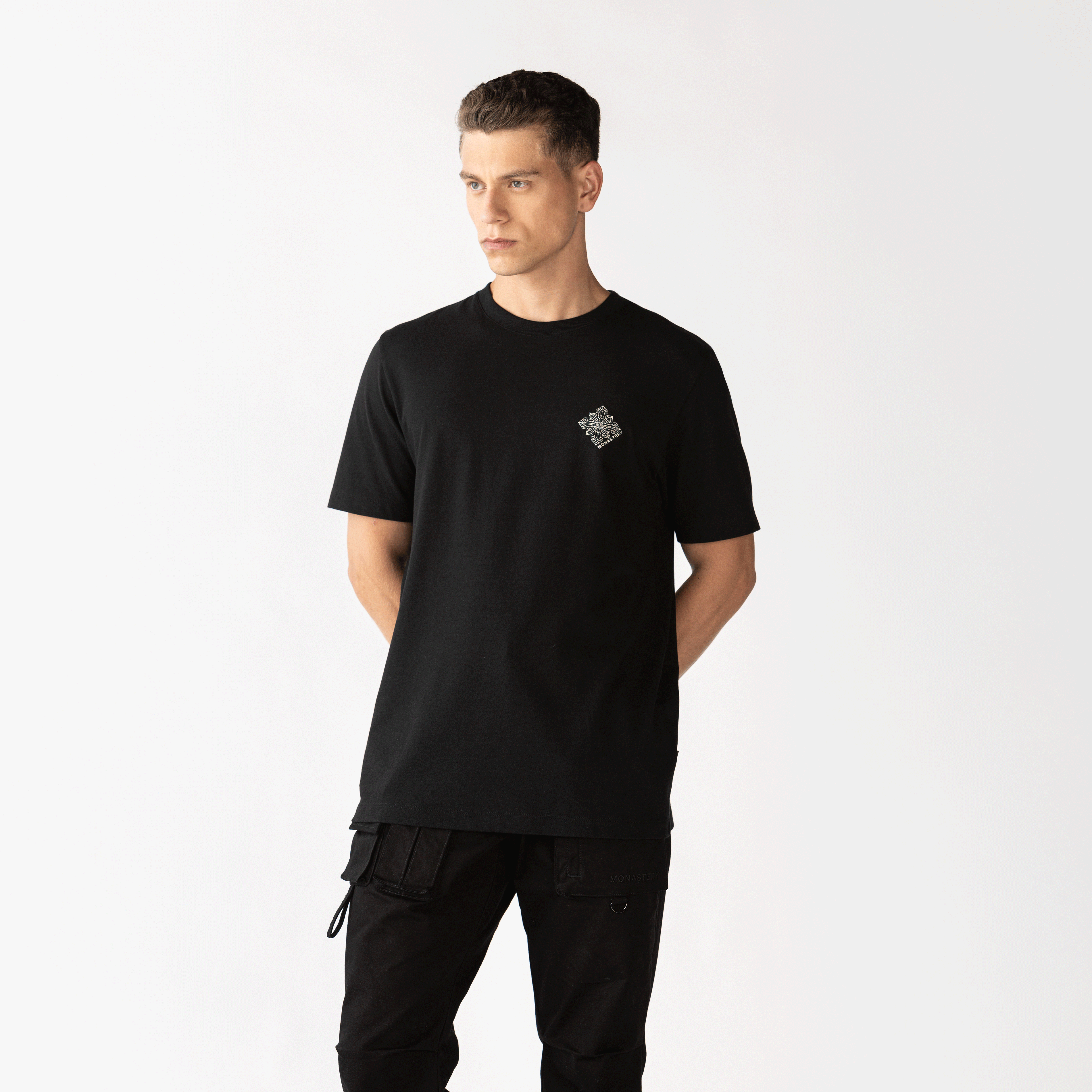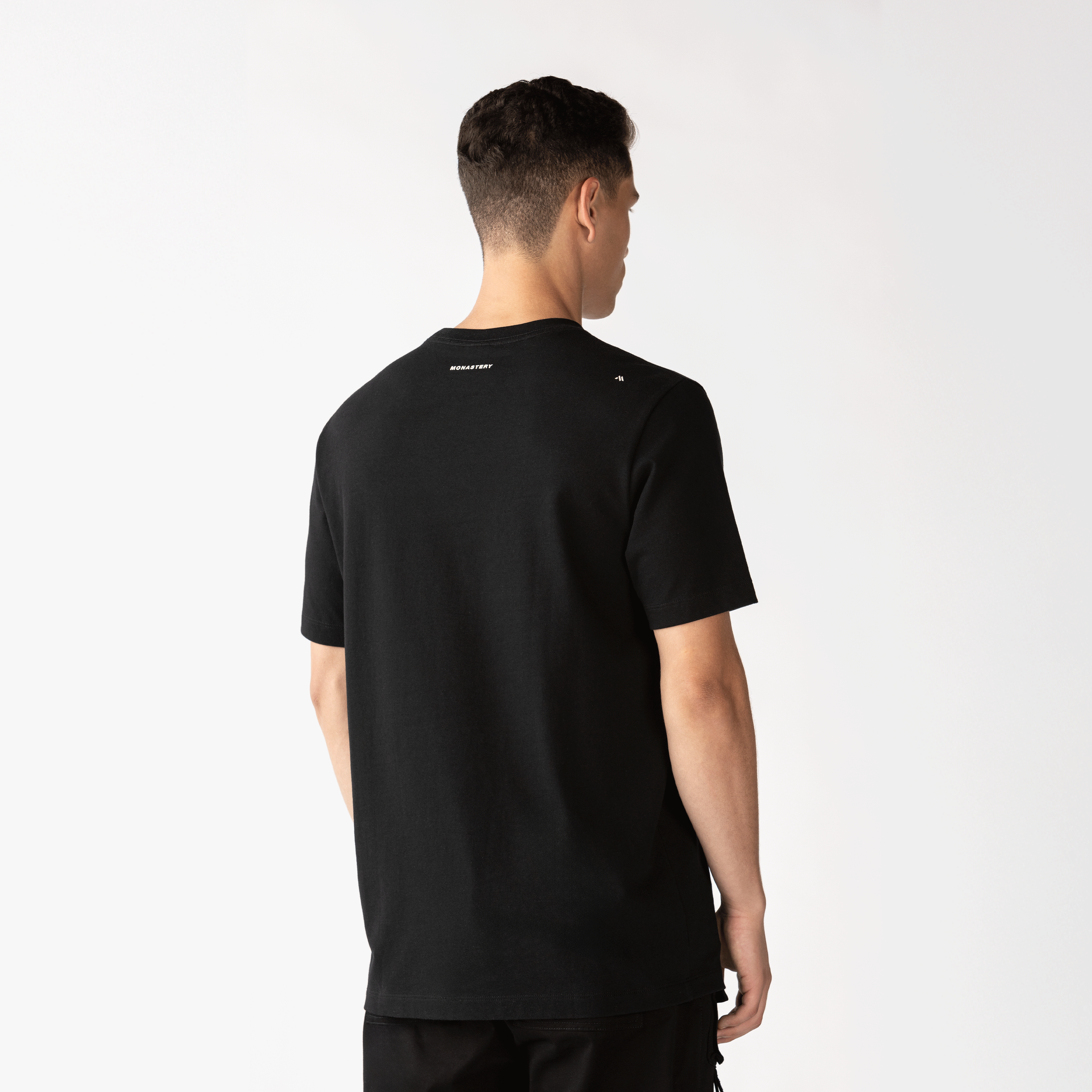 The Catterdale black t-shirt is made in a regular silhouette, made from cotton exclusive to Monastery, this t-shirt offers a soft and comfortable texture. It features a flat cross-shaped embroidery art, located in heart stitch, which provides a modern and meaningful touch. On the back, the signature arts are made in high density, providing a distinctive and elegant finish. Ideal for those looking for a unique and contemporary style.