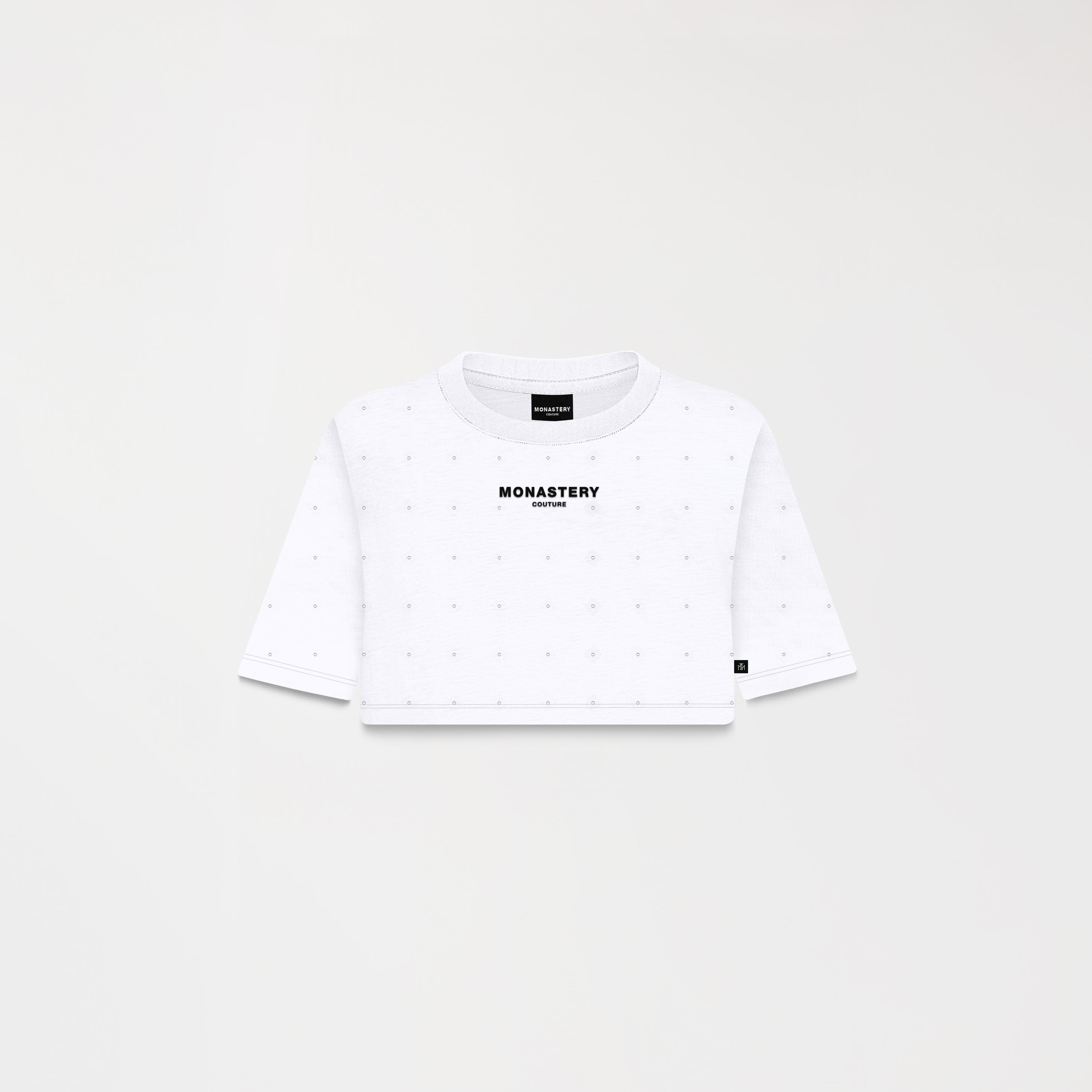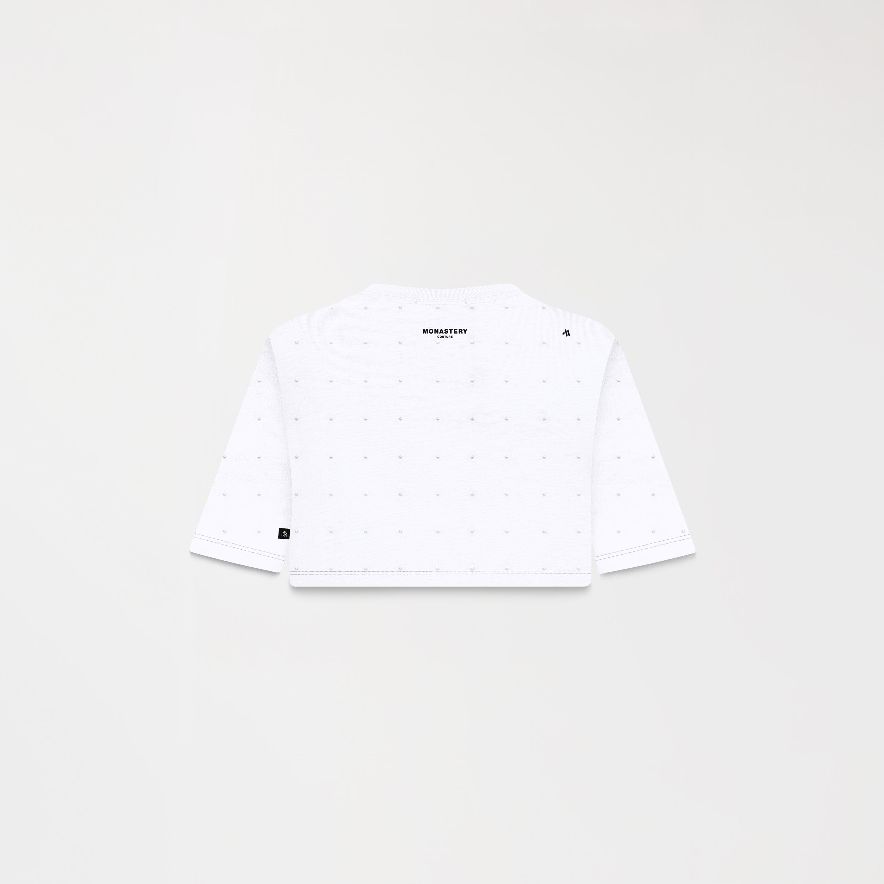 Feminine crop top in 100% cotton, exclusive to Monastery, with a small silhouette.