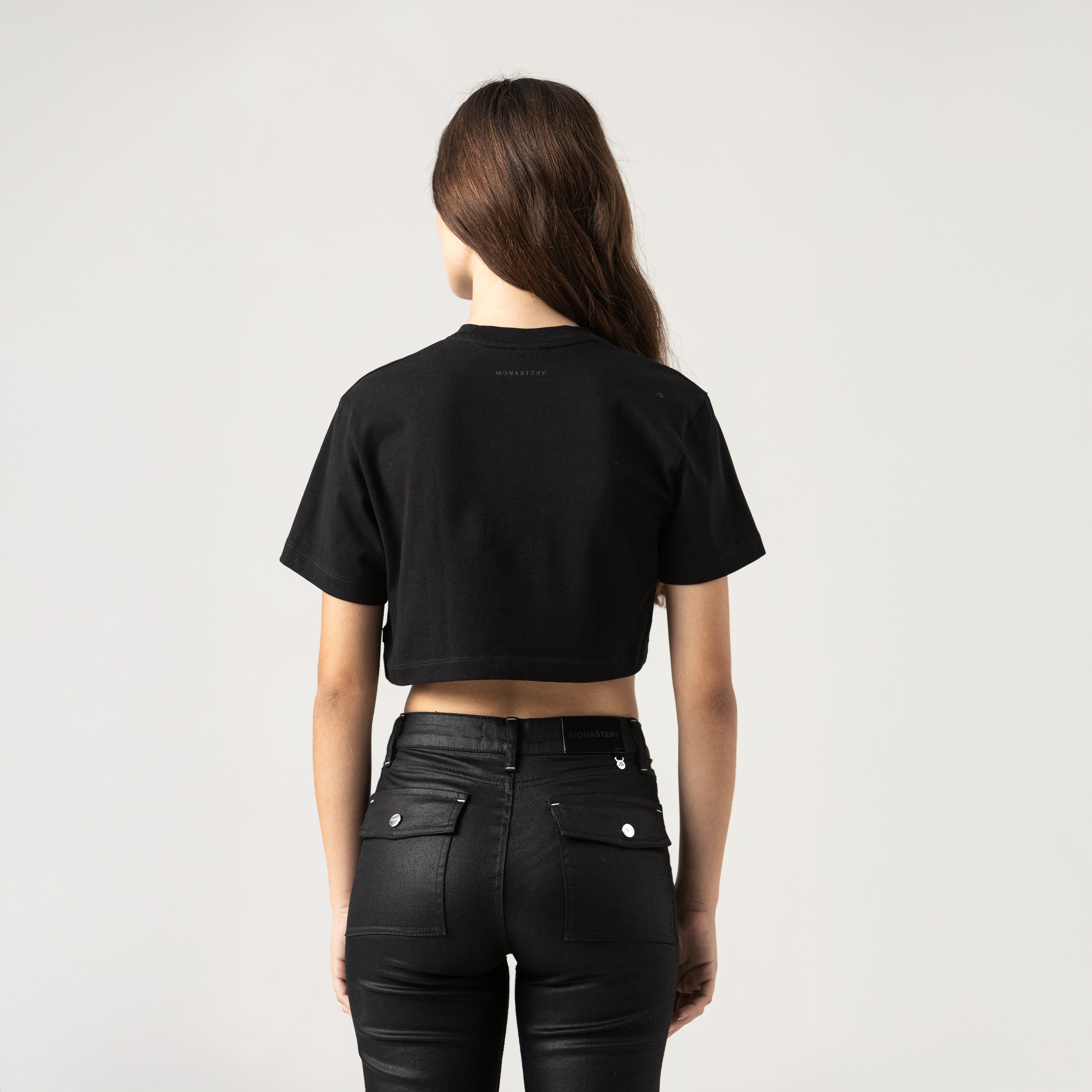 The Sunna crop top redefines the essential with a small, clean silhouette, crafted from high-quality Peruvian cotton for softness and durability. The 3D embroidery on the front, along with the spray-effect print, creates a visual contrast full of texture and expressiveness. On the back, traditional logos in a flat print balance originality and classic aesthetics. A versatile and artistic garment, designed for urban looks with character.