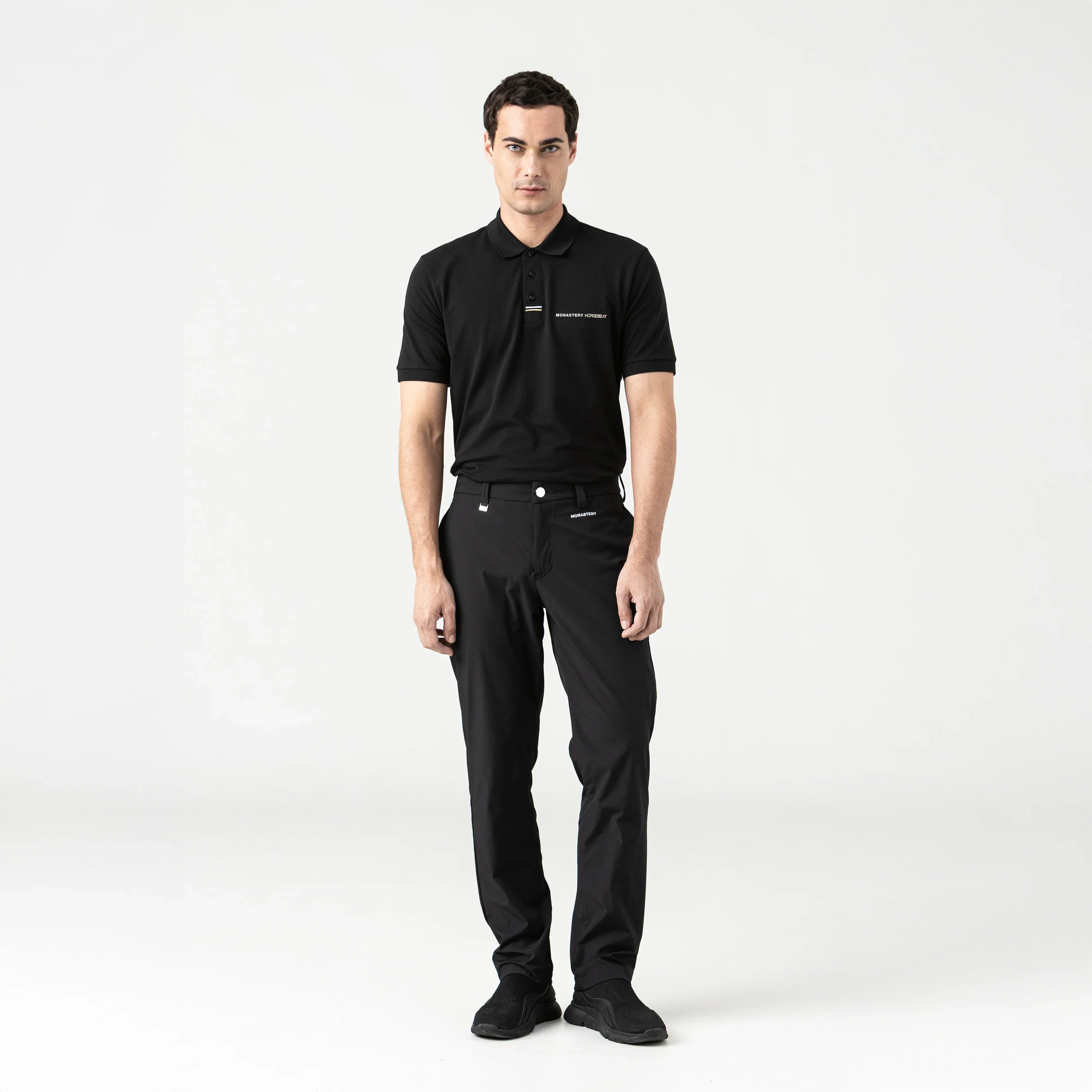 El bordado frontal funciona como un gesto gráfico sutil que enfatiza el carácter técnico de la prenda sin sacrificar elegancia.