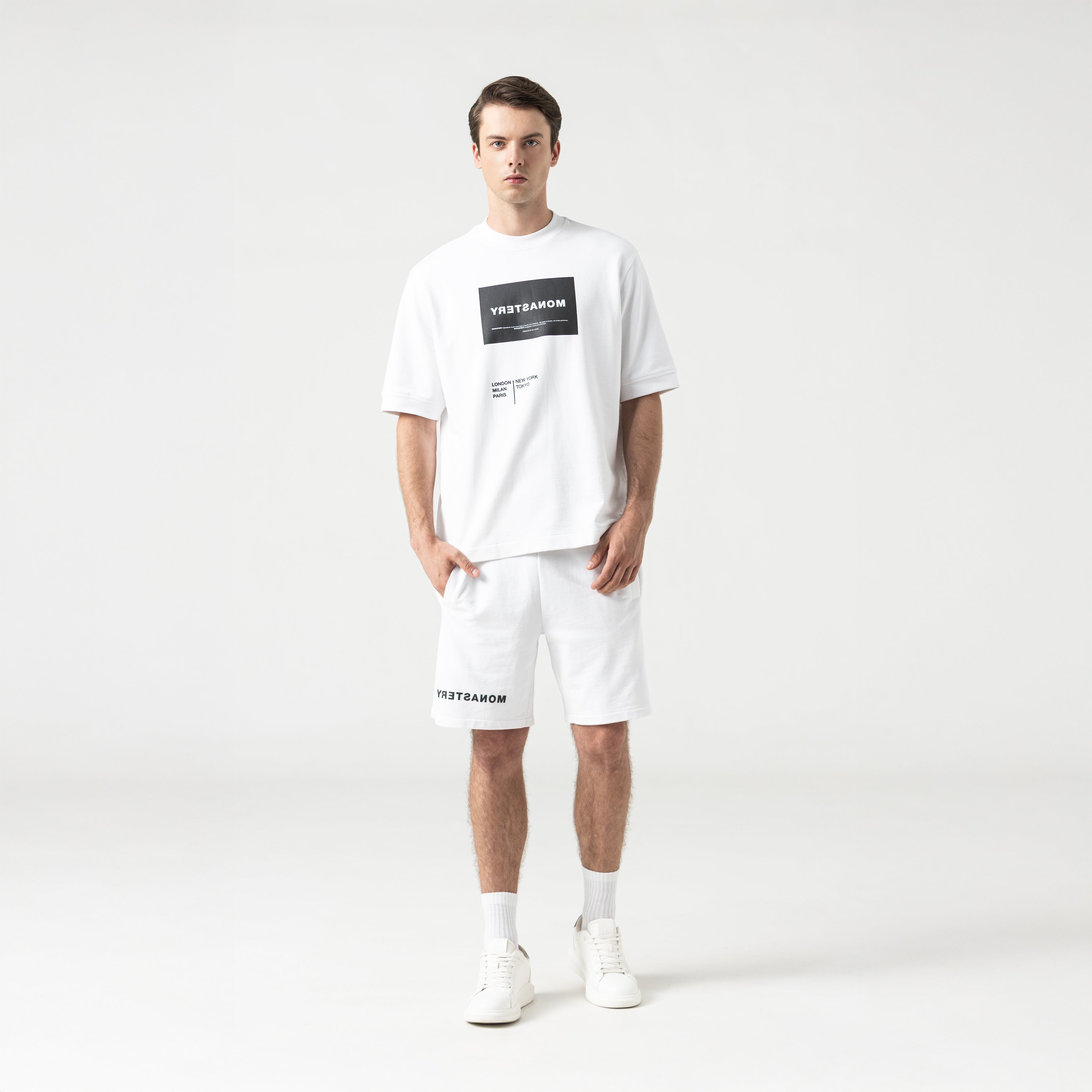 Witton is a men's coarse set made from a cotton and polyester blend. Its t-shirt is crafted in an oversized silhouette with Monastery logo artwork using a high-density and flat print technique. The shorts are crafted in a regular silhouette with our Monastery logo artwork using a high-density technique. Witton is a modern, dynamic, and comfortable item, created to stand out in your everyday life.