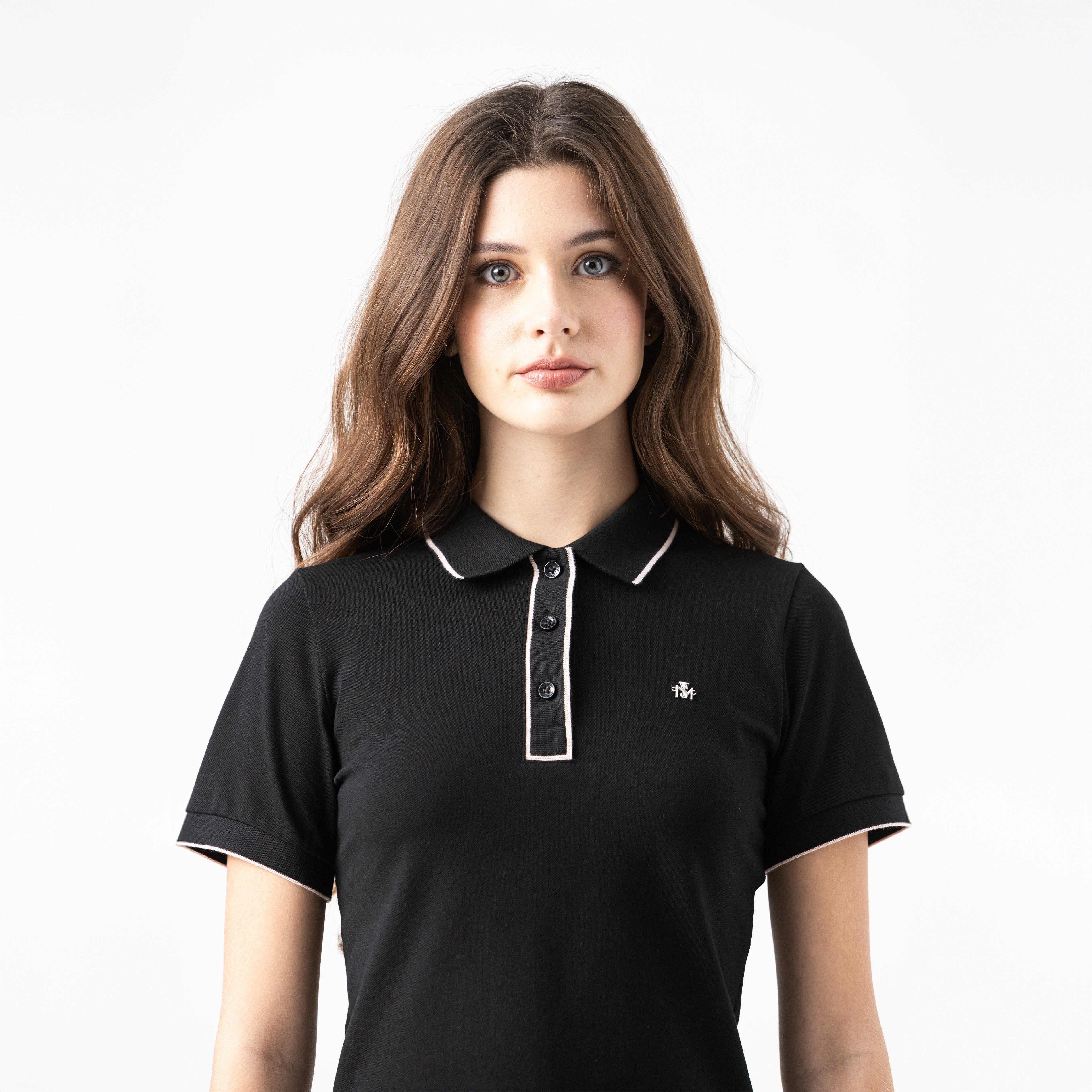 This regular-fit polo shirt is crafted from high-quality Pima piqué, developed exclusively for Monastery. The front features a contrasting TSM metallic plaque with a highly durable, shiny silver finish. On the back, the signature logos are printed flat, reinforcing the garment's identity. The collar, cuffs, and collar feature contrasting tippings that frame the garment and enhance its presence. A design that precisely balances structure, detail, and character.